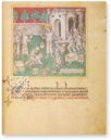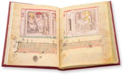Die bewegende Lebensgeschichte des Mönchsvaters Antonius ist mit 200 aufregenden Grisaille-Miniaturen illustriert, einheitlich gestaltet sind. Die Darstellungen zeigen sanfte, monochrome Landschaften und lebhafte Szenerien aus dem höfischen Alltag im Mittelalter. Man sieht Ritter in Rüstungen, die Schwertkämpfe zu Pferden austragen oder gesellschaftliche Ereignisse, bei denen Adlige zu Musik und mit Speis und Trank feierten. Der meisterhafte Codex befand sich eine Zeit lang im Besitz des Papstes Eugene IV. und des berühmten Renaissancefürstentums der Medici.