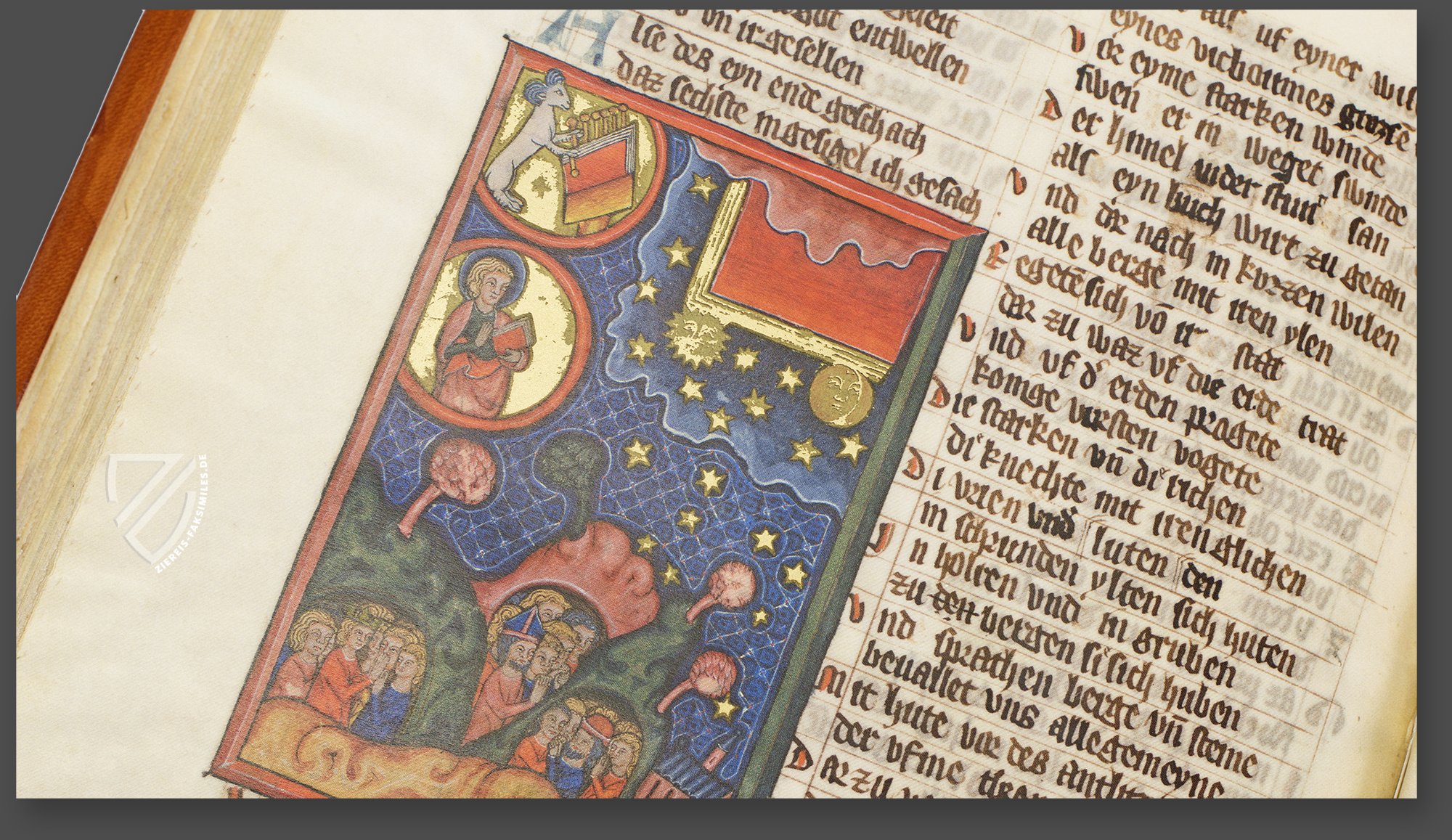 Die Apokalypse des Heinrich von Hesler wurde im 13. Jahrhundert verfasst. Ihr genauer Entstehungszeitraum blieb bis heute ungeklärt. Das aufregende Werk ist eine deutsche Übersetzung der Johannesoffenbarung, dem letzten Buch des Neuen Testaments. Der gereimte Prosatext der Handschrift und seine umwerfende, reich mit Gold versehene Illumination machen die Apokalypse zu einem der interessantesten Werke der mittelalterlichen deutschen Literatur.
