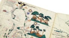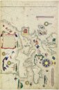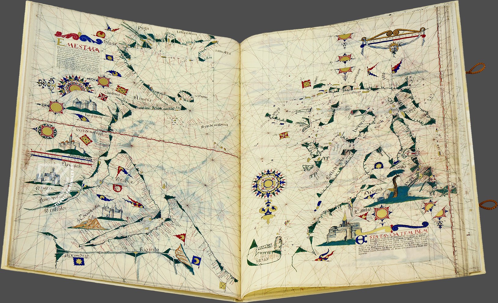Die Iberische Halbinsel führte Europa bei der Erkundung der Neuen Welt an und produzierte von daher auch einige der besten Kartografien des 15. und 16. Jahrhunderts. Der Atlas von Lázaro Luis ist ein portugiesisches Werk aus dem Jahr 1563. Er erfreute sich im 16. Jahrhundert großer Beliebtheit und ist für uns heute noch ein genaues Abbild der Welt ist, wie sie den europäischen Kartographen damals bekannt war. Die Karten sind mit Darstellungen der einheimischen Bevölkerung in ihrer einheimischen Kleidung versehen und enthalten weitere Details wie die lokale Flora, den Verlauf von Flüssen und Gebirgszügen, Dörfer, Städte und die Wappen der Länder der Welt. Eine schöne Sternenkarte leitet den Rest des Werkes ein und ein ganzseitiges Portrait der Madonna mit Kind bildet den Abschluss.
