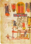 Ein Weinstock verbindet die irdischen Erntearbeiter mit ihren engelsgleichen Aufsehern im Himmel, der durch einen Altar im oberen Register repräsentiert wird. Das untere Register zeigt derweil eine realistische Darstellung einer mittelalterlichen Weinpresse: "Da stach der Engel seine Sichel in die Erde und sammelte den Weinstock der Erde und warf ihn in die große Kelter des Zornes Gottes." (Offb. 14:19)