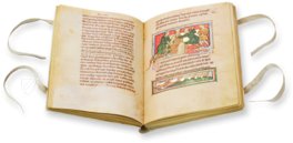 - 114 Miniaturen, 4 davon ganzseitig und die meisten mit Goldhintergrund sowie rot-blaue Zierinitialen