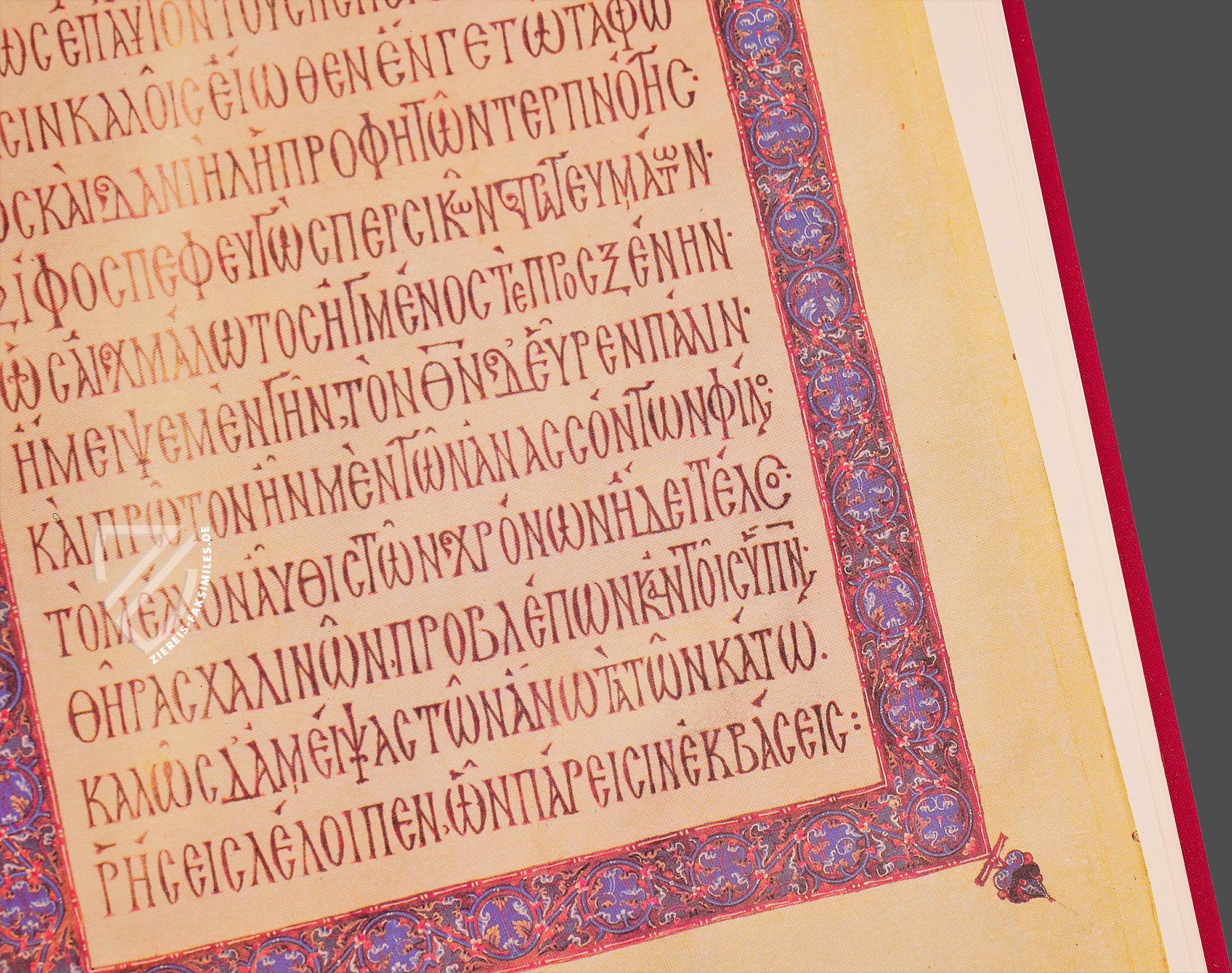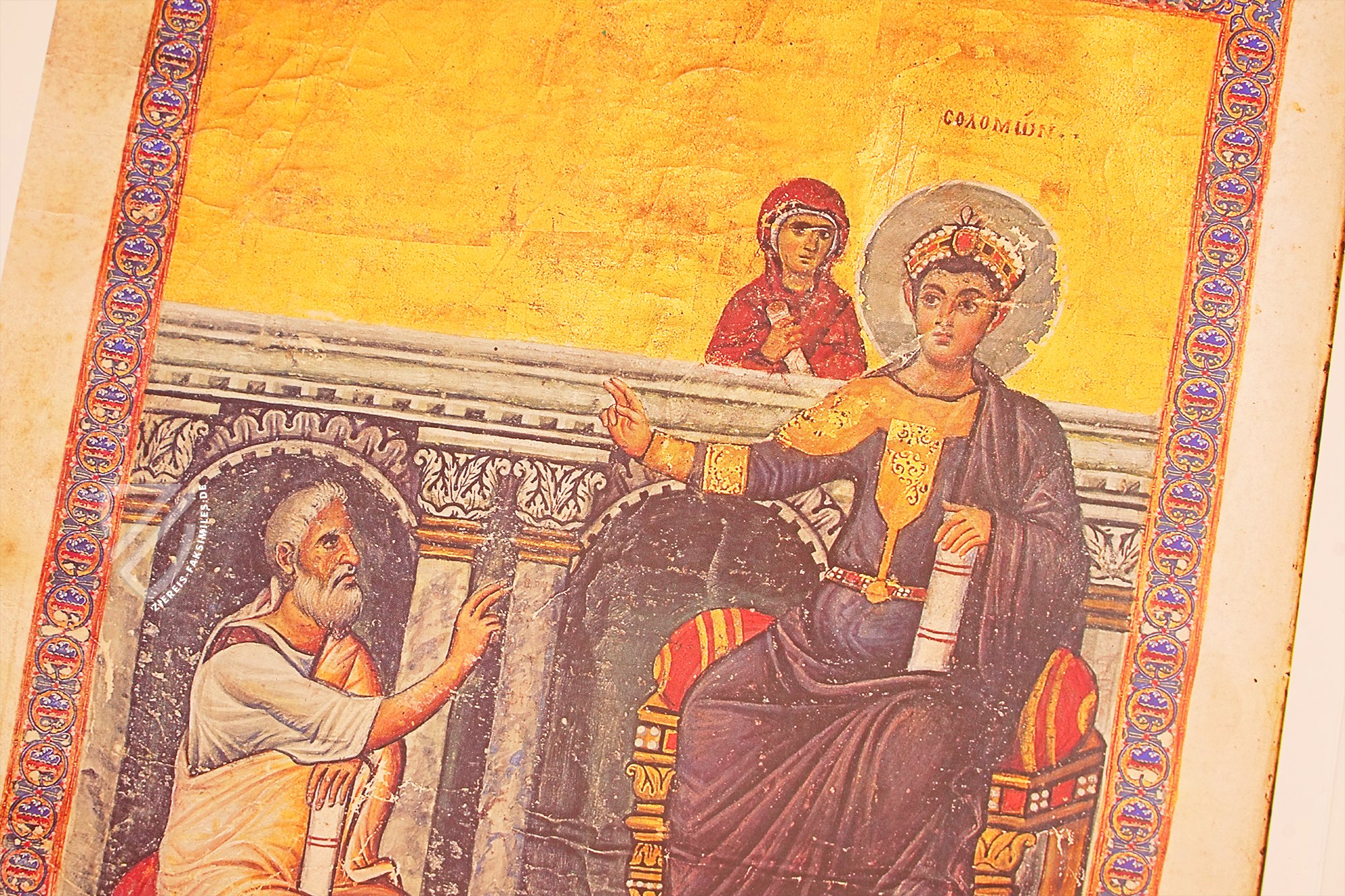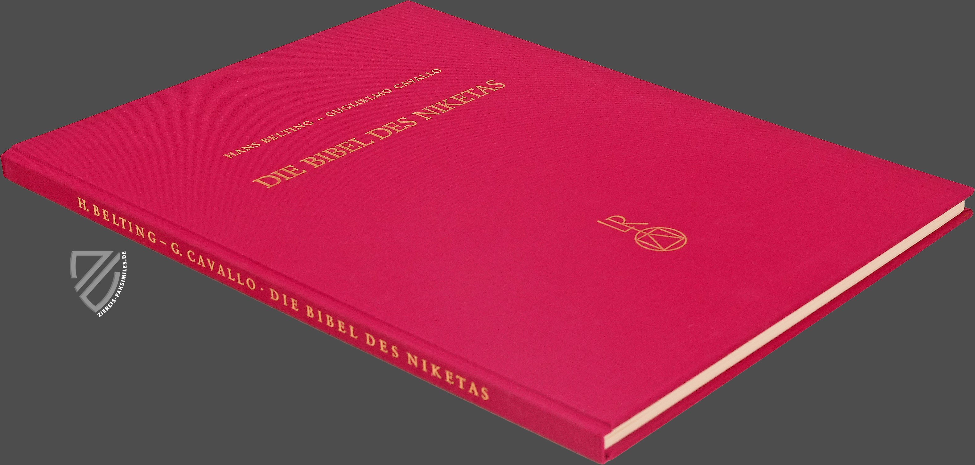 Die Bibel des Niketas ist eine monumentale Bibelhandschrift aus mehreren Bänden, die im späten 10. Jahrhundert für einen byzantinischen Hofbeamten namens Niketas geschaffen wurde. Die drei erhaltenen Bände befinden sich heute in Florenz, Kopenhagen und Turin. Sie alle sind Abschriften einer deutlich älteren, spätantiken Bibel aus dem 6. Jahrhundert. Auch in der Textgestaltung und den opulenten, ganzseitigen Miniaturen, die die einzelnen biblischen Bücher einleiten, sind gezielte Rückgriffe auf antike Buchtraditionen zu erkennen. Damit ist die Bibel des Niketas ein wunderbares Beispiel für den traditionsbewussten Kunstsinn der Blütezeit der makedonischen Renaissance und spiegelt nicht zuletzt das Selbstverständnis des byzantinischen Kaisertums wider. Die Bibelhandschrift zeugt zugleich von einem hohen intellektuellen Anspruch, da dem althergebrachten, griechischen Bibeltext ein beeindruckender Glossenapparat aus exegetischen Kommentaren beigegeben wurde, der sich rahmend um die heiligen Zeilen legt und teilweise figürliche Formen annimmt. Dieser komplexe Inhalt und die künstlerische Raffinesse in Text und Bild deuten darauf hin, dass das Werk möglicherweise im kaiserlichen Skriptorium selbst von geübten Händen hergestellt wurde. Ein Meisterwerk frühmittelalterlicher, byzantinischer Buchkunst!