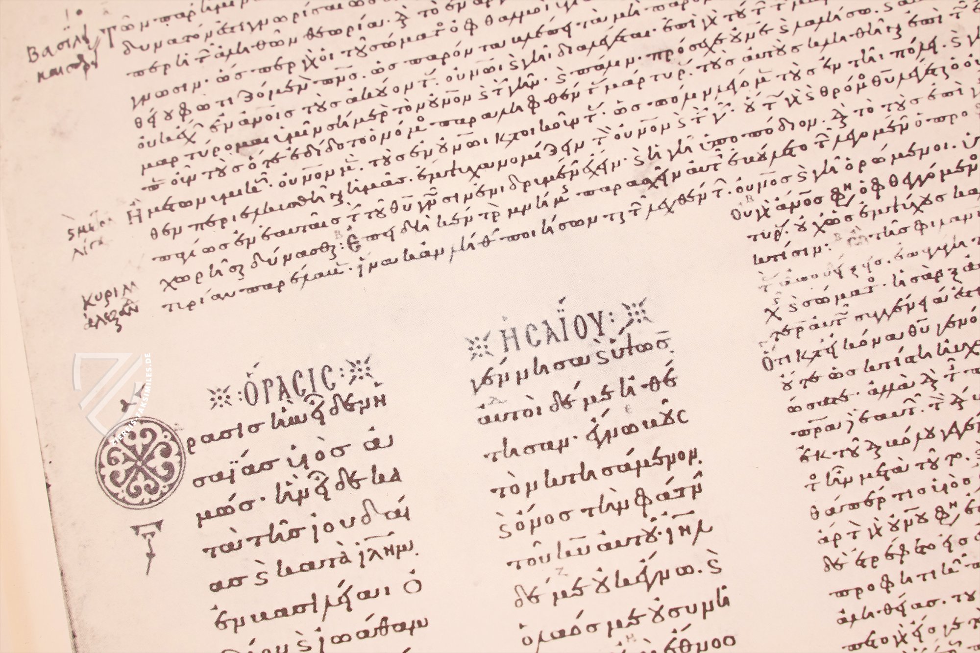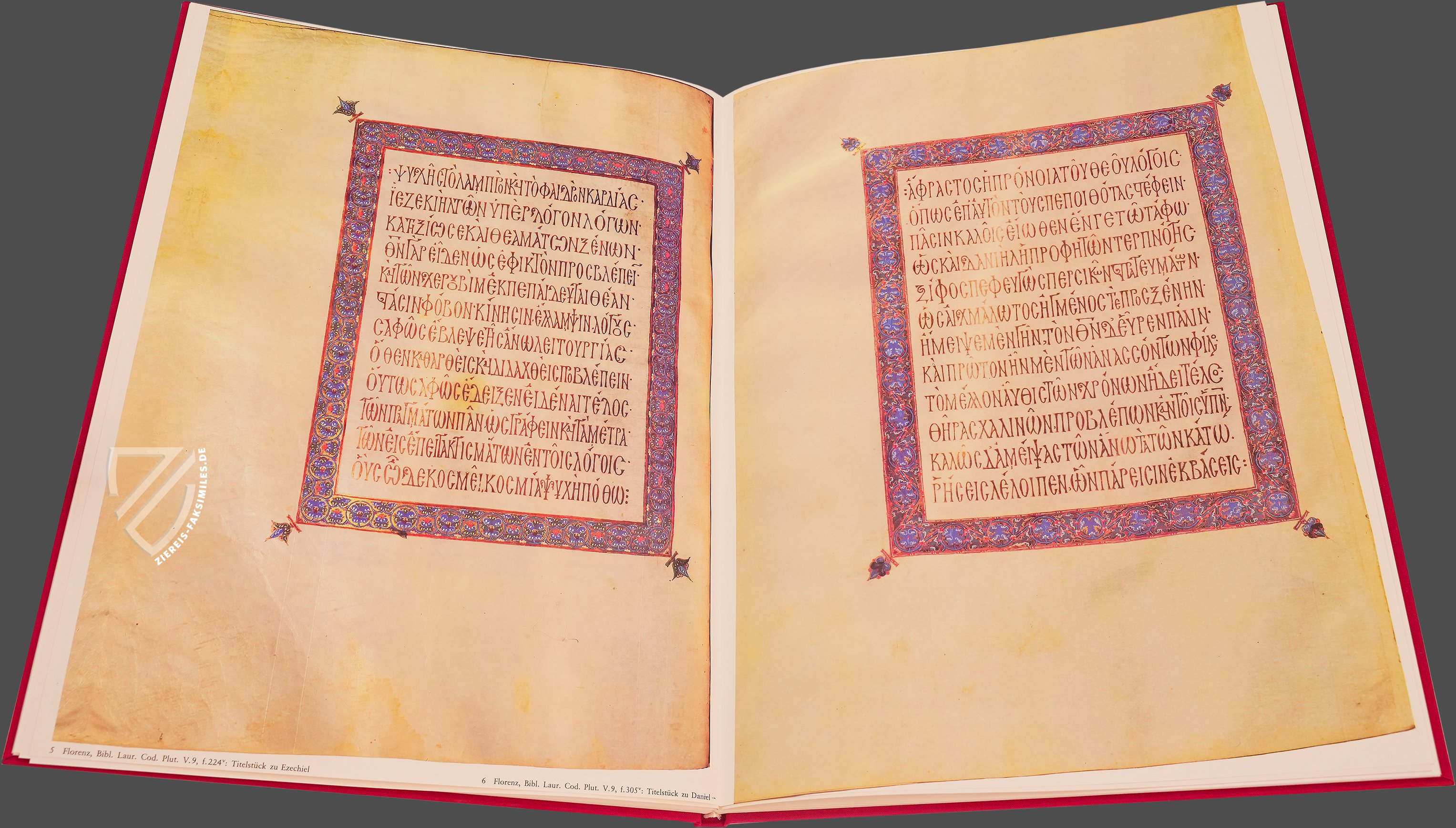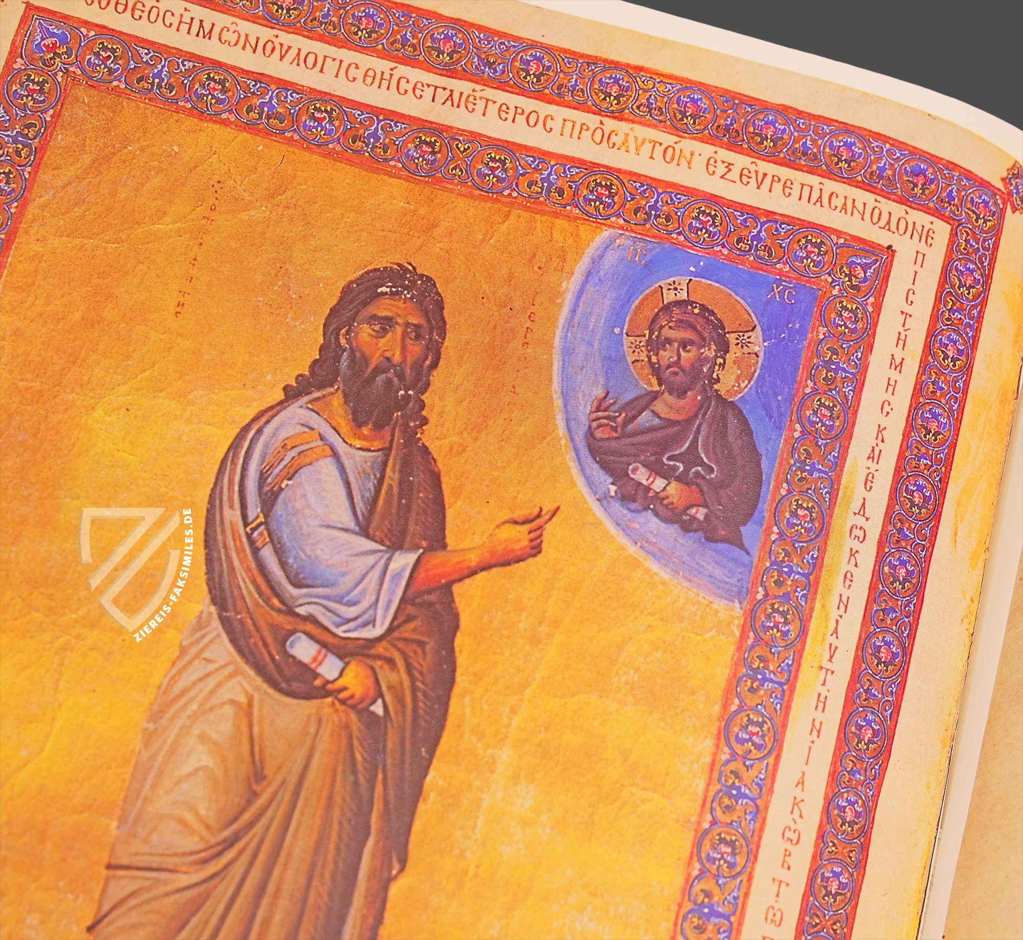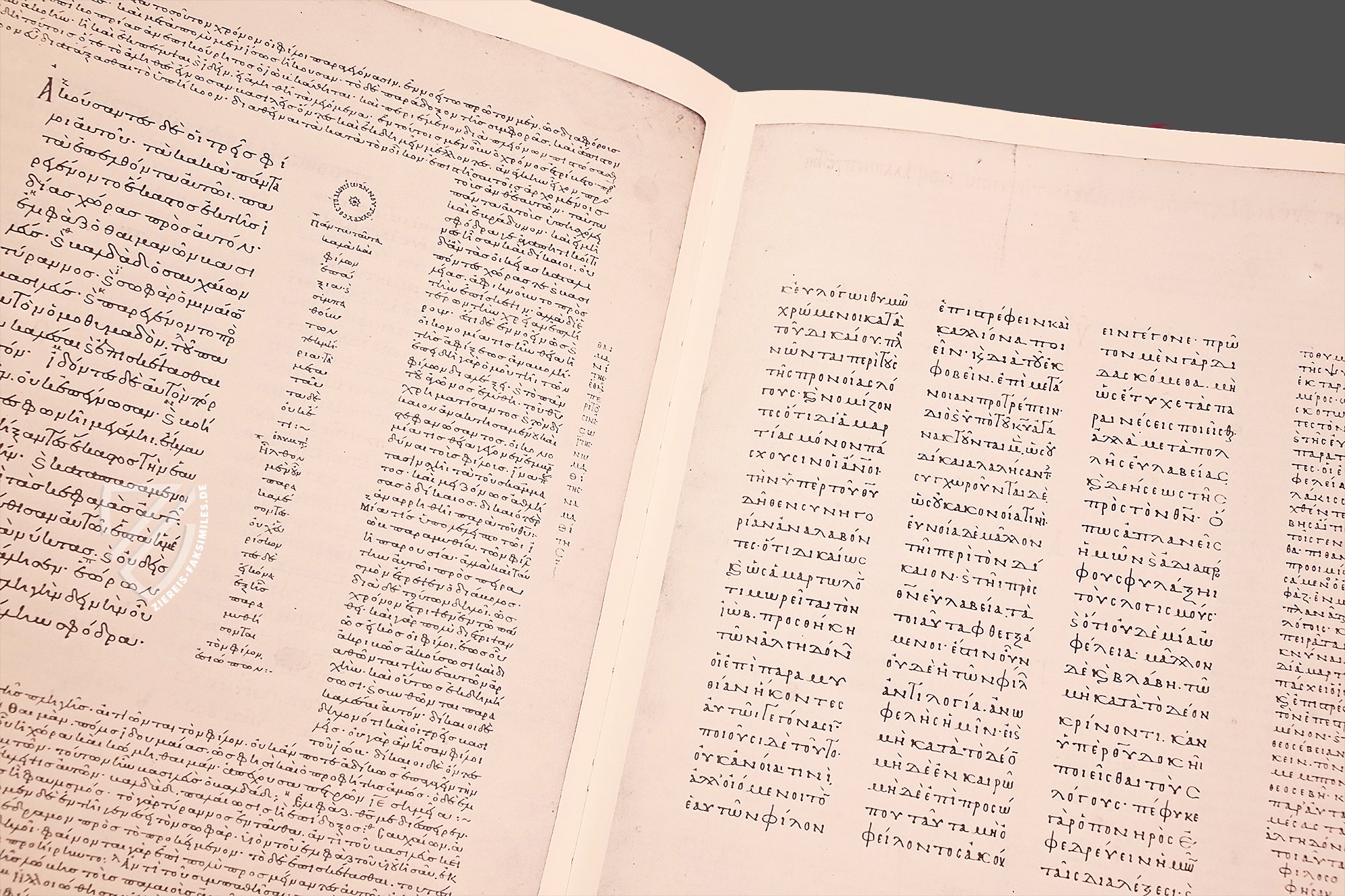 Die Bibel des Niketas ist eine monumentale Bibelhandschrift aus mehreren Bänden, die im späten 10. Jahrhundert für einen byzantinischen Hofbeamten namens Niketas geschaffen wurde. Die drei erhaltenen Bände befinden sich heute in Florenz, Kopenhagen und Turin. Sie alle sind Abschriften einer deutlich älteren, spätantiken Bibel aus dem 6. Jahrhundert. Auch in der Textgestaltung und den opulenten, ganzseitigen Miniaturen, die die einzelnen biblischen Bücher einleiten, sind gezielte Rückgriffe auf antike Buchtraditionen zu erkennen. Damit ist die Bibel des Niketas ein wunderbares Beispiel für den traditionsbewussten Kunstsinn der Blütezeit der makedonischen Renaissance und spiegelt nicht zuletzt das Selbstverständnis des byzantinischen Kaisertums wider. Die Bibelhandschrift zeugt zugleich von einem hohen intellektuellen Anspruch, da dem althergebrachten, griechischen Bibeltext ein beeindruckender Glossenapparat aus exegetischen Kommentaren beigegeben wurde, der sich rahmend um die heiligen Zeilen legt und teilweise figürliche Formen annimmt. Dieser komplexe Inhalt und die künstlerische Raffinesse in Text und Bild deuten darauf hin, dass das Werk möglicherweise im kaiserlichen Skriptorium selbst von geübten Händen hergestellt wurde. Ein Meisterwerk frühmittelalterlicher, byzantinischer Buchkunst!