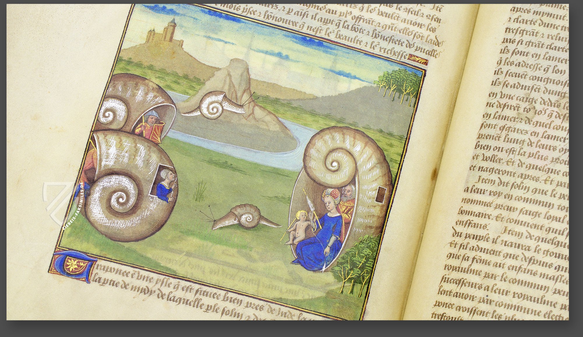 Für Charles d'Orléans, Graf von Angoulême (1459-96), den Vater des späteren französischen Königs Franz I., fertigte Robinet Textard (fl. 1470–1531), einer der begnadetsten Miniaturisten seiner Zeit, eine Meisterwerk der Buchkunst. Das Buch der Wunder der Natur ist eine anonyme Schrift, die in Frankreich um 1400 zusammengestellt wurde und die Länder und Provinzen der Alten Welt präsentierte und beschrieb. Testard illustrierte in den Jahren um 1480–85 diese grandiose Beschreibung von teils phantastischen und merkwürdigen Erdteilen in seiner ihm eigenen Art, in wunderbar feiner Malerei mit kuriosen Bilderfindungen. Der unterhaltsame und zugleich moralisch-didaktische Text in Verbindung mit den wunderschönen Illustrationen ist ein wahrer Schatz der Buchkunst des 15. Jahrhunderts!
