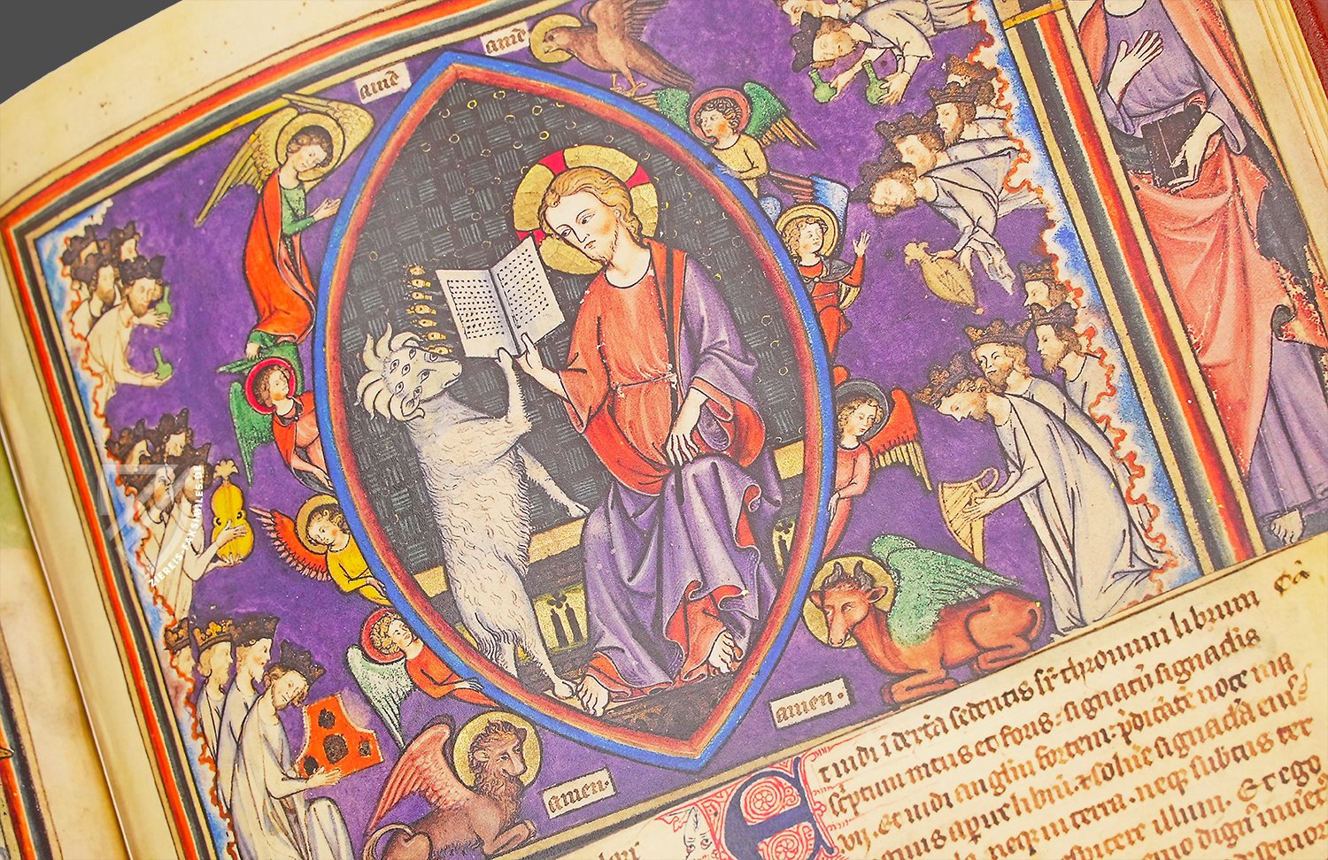 Die prächtige Cloisters-Apokalypse stammt aus der Normandie, Frankreich, und entstand um das Jahr 1330. Sie ist mit 72 großen Miniaturen geschmückt, die zeitgenössischen Glasmalereien ähneln, darunter vier ganzseitige Miniaturen, die unter Verwendung von Blattgold und -silber, reichhaltigen Temperafarben und farbiger Tinte ausgeführt wurden. Die Miniaturen sind im Weichen Stil der gotischen Buchmalerei ausgeführt und stellen die Offenbarung des Johannes in einer traumhaften Manier dar, in der die bedrohlichsten Gestalten der Apokalypse eine Verbindung eingehen mit angenehmen Szenen der höfischen Häuslichkeit. Der Einfluss von Beatus von Liébanas Kommentar zur Apokalypse ist in spanischen anmutenden Details zu entdecken, die sich durch die gesamte Handschrift ziehen. Dieser leuchtende, bildgewaltige Codex mit seinen anmutigen und meisterhaften Miniaturen gehört zu der kleinen, aber erlesenen Sammlung illuminierter Manuskripte in The Cloisters in New York City.