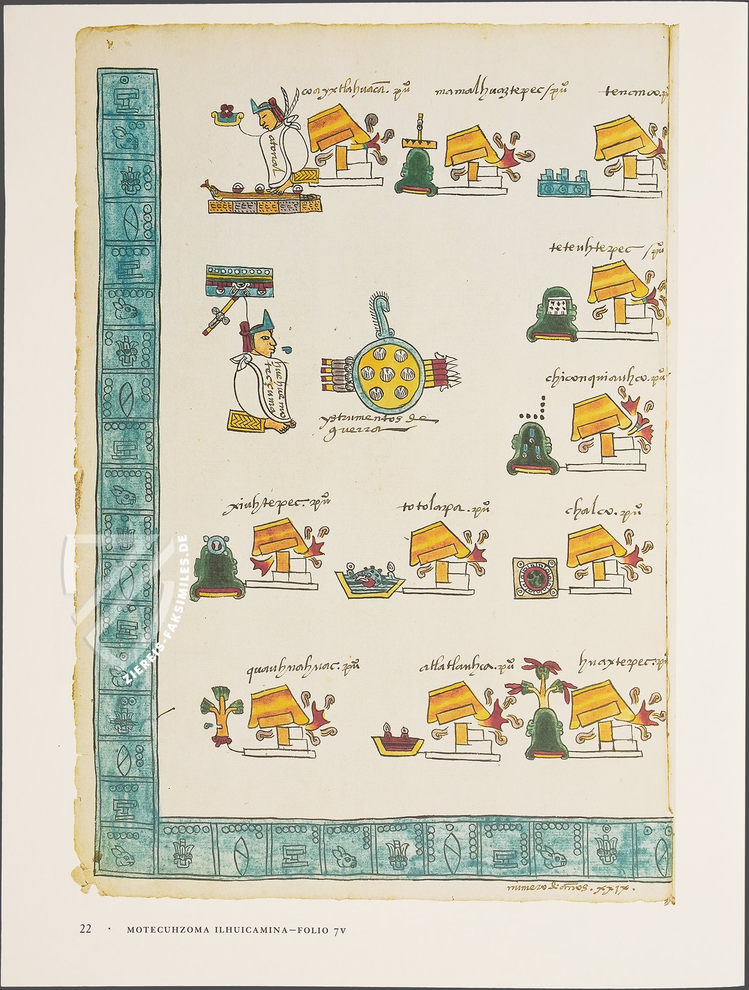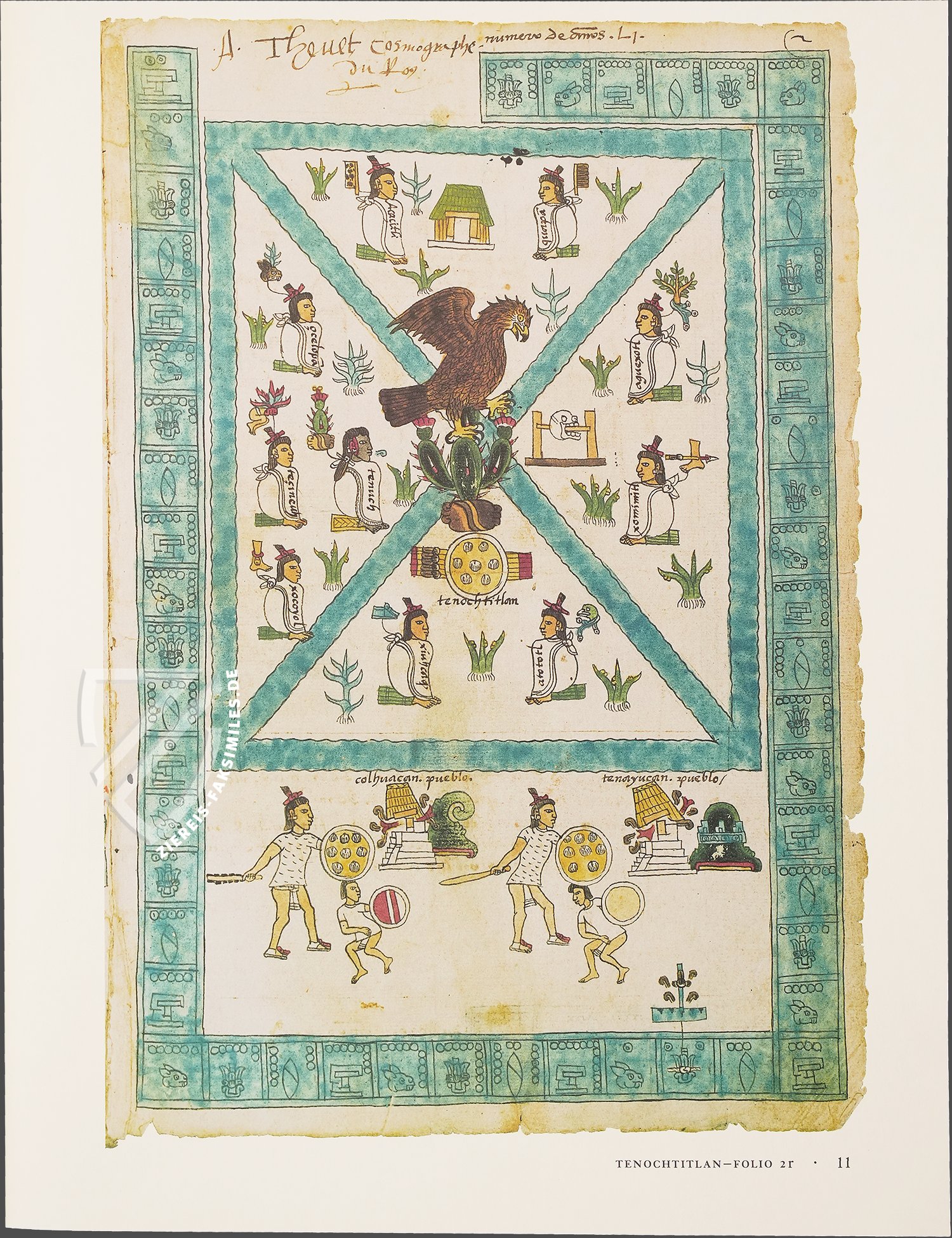 Dieses aztekische Manuskript, bekannt als Codex Mendoza, enthält eine Geschichte der aztekischen Herrscher, ihrer Eroberungen und der an sie gezahlten Tribute sowie wertvolle Beschreibungen des Alltagslebens der aztekischen Bevölkerung vor der spanischen Eroberung. Es wurde etwa 1541 geschaffen und ist nach seinem Auftraggeber benannt: Don Antonio de Mendoza, der Vizekönig von Neuspanien und ein Mäzen der indigenen Künstler. Als die spanische Krone einen Bericht über das politische und tributäre System der Azteken wünschte, stellte Mendoza, eingedenk der bei der Eroberung zerstörten Artefakte und Traditionen, eine Gruppe von indigenen Künstlern zusammen, die unter der Aufsicht von spanischen Priestern arbeiten sollten. Sie erstellten den Bericht mittels traditioneller aztekischer Piktogramme in der Nahuatl-Sprache und ergänzten ihn mit einer Übersetzung und einem Kommentar in Spanisch. Es wurde dabei nicht nur spanisches Papier verwendet – die Handschrift wurde auch im Stil eines europäischen Buches gebunden. Vor allem aber ist der Codex Mendoza eine wertvolle Quelle zur Kunst, Geschichte, Regierung und Kultur des aztekischen Volkes.