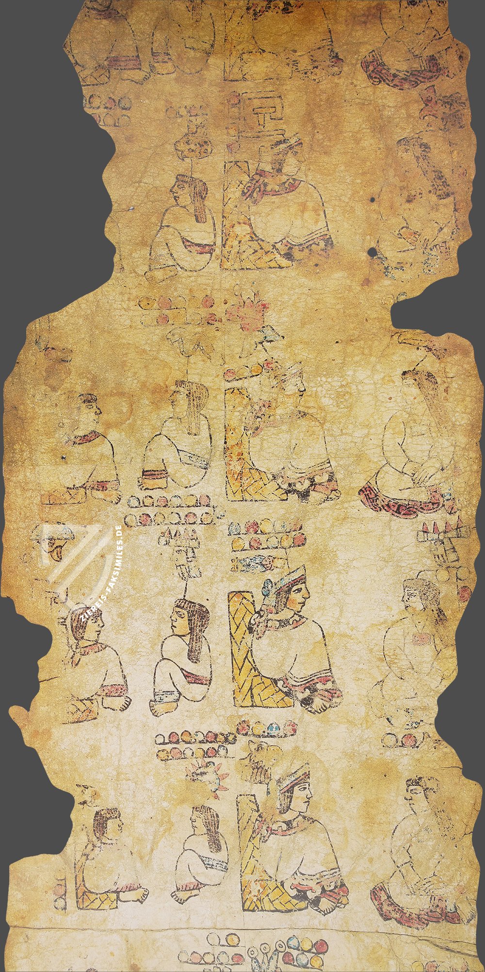 Kostbares Dokument aus dem Reich der Mixteken: Diese waren eine benachbarte Hochkultur der Azteken. Ihr Gebiet befand sich zwischen der Hauptstadt des Aztekenreiches Tenochtitlan (auf dem Gebiet des heutigen Mexiko City) und dem heutigen Bundesstaat Oaxaca, ca. 460 km sĂŒdöstlich von Mexiko City gelegen. Der reich bebilderte Codex Tulane macht schnell die Unterschiede zum Aztekenreich deutlich: In ihrem Gebiet brachten die Mixteken sehr kunstvolle Keramik in charakteristisch leuchtenden, hĂ€ufig tĂŒrkisen Farbtönen hervor. Der Codex von Tulane ist ausgerollt nahezu 4 m lang und enthĂ€lt auf Hirschleder nicht nur eine mythologische Ursprungsszene, sondern auch die Genealogie zweier Dynastien aus AcatlĂĄn und Chila ĂŒber 15 Herrschergenerationen hinweg. Diese Handschrift ist die einzige schriftliche Quelle ĂŒber die sĂŒdlich von Mexiko City gelegene Puebla-Region. Somit stellt sie heute den wertvollsten Schatz der Tulane-University in New Orleans dar.