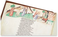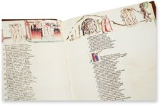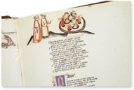 Das Manuskript des berühmten Dichters Dante Alighieri, das als die Göttliche Komödie bekannt ist, zählt weltweit als eines der bedeutendsten literarischen Erzeugnisse aller Zeiten. Dantes Einfluss auf die Welt der Poesie kann nicht in Worte gefasst werden. Seine berühmteste Handschrift, die über die Jahrhunderte hinweg immer wieder neu bearbeitet wurde, existiert heute in unzähligen verschiedenen Ausgaben. Die uns vorliegende Version entstand im Auftrag des italienischen Adelsgeschlechts der Este. Jede Seite des Werkes ist mit einer Bildszene oberhalb des geschriebenen Textes illustriert. Die Bilder veranschaulichen das Textgeschehen auf zauberhafte Weise.
