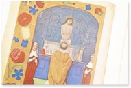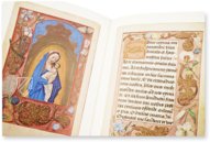 - 3 historisierte Initialen, 5 Seiten mit Zierrahmen, 5 ganzseitige Miniaturen, 13 illuminierten Seiten in Farbe