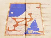 Der große Universalgelehrte Claudius Ptolemäus verfasste im zweiten Jahrhundert ein Traktat über die Geographie, welches bis ins Hochmittelalter nicht an Bedeutung verlor. Anhand dieses Traktats entstanden weltweit die ersten Landkarten und Atlanten. Der hier vorliegende Atlas ist eine der schönsten Bearbeitungen der Lehre des Ptolemäus. Er entstand im 15. Jahrhundert in Italien, als Auftragswerk König Alfons´ V. von Aragon. Das kostbare Werk ist mit leuchtend farbigen Landkarten und zahlreichen Verzierungen aus edlem Blattgold geschmückt.