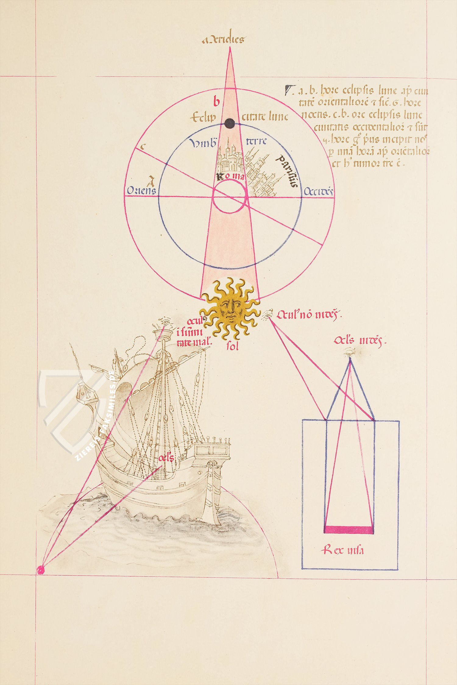 - 15 ganzseitige Miniaturen, 9 astronomische Zeichnungen sowie ein Diagramm zum Mond und dem Klima