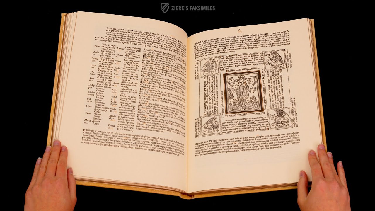 Der Fasciculus Temporum, das Kleine BĂŒndel der Zeiten, ist die Geschichte der Welt von der Schöpfung bis zur Herrschaft von Papst Sixtus IV. (1414-84) von Werner Rolevinck (1425-1502), die zu Lebzeiten des Autors in fast 40 Ausgaben erschien und bis 1726 weiter veröffentlicht und ĂŒbersetzt wurde - diese spezielle Ausgabe erschien 1480. Diese seltene Inkunabel, ein vor 1501 gedrucktes Buch, ist das einzige erhaltene Werk aus der Druckerei von BartolomĂ© Segura und Alfonso del Puerto in Sevilla. Es ist im Wesentlichen eine Sammlung theologischer, philosophischer, homiletischer, asketischer, exegetischer, biografischer und historischer Texte. Die andere Abhandlung, die in den Codex aufgenommen ist, ist die Schrift Auctoritates de Vita et Moribus Philosophorum, Ăber Leben und Lehren (berĂŒhmter) Philosophen. Sie wurde ursprĂŒnglich im 3. Jahrhundert n. Chr. von dem griechischen Biographen Diogenes LaĂ«rtius verfasst. Sein Werk ist geprĂ€gt von der Tendenz, philosophische Lehren so darzustellen, ohne sie zu interpretieren oder zu erweitern. Heute stellt es eine der maĂgebendsten Quellen zur Geschichte der griechischen Philosophie dar, weil die PrimĂ€rquellen, auf die sich Diogenes stĂŒtzte, unterdessen zum gröĂten Teil verloren gegangen sind. Diese beiden faszinierenden lateinischen Werke sind in einer eleganten, abgerundeten gotischen Schrift gedruckt und mit eingravierten Darstellungen, architektonischen Abbildungen, Stadtbildern, religiösen Szenen, Initialen und Blumenborten geschmĂŒckt - einige der letzten beiden sind mit reichen Rot-, Blau- und Blattgoldschattierungen geschmĂŒckt.