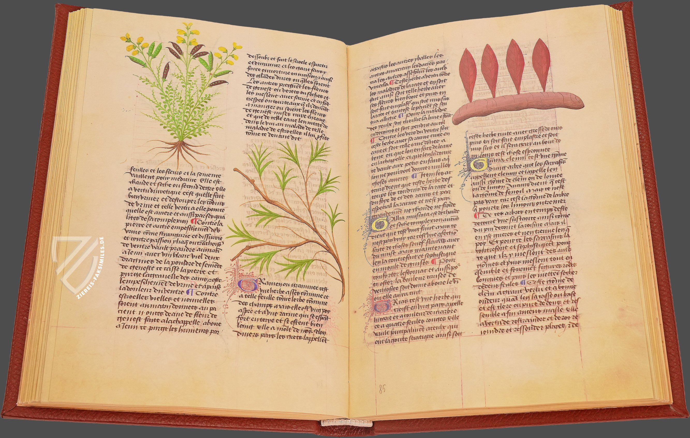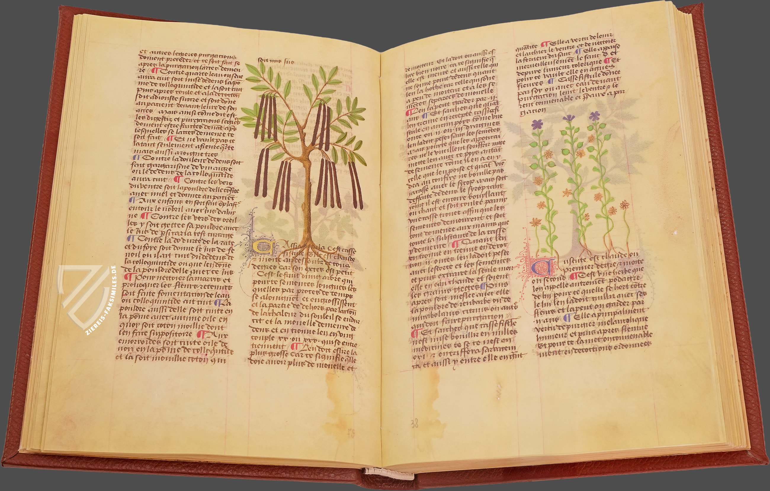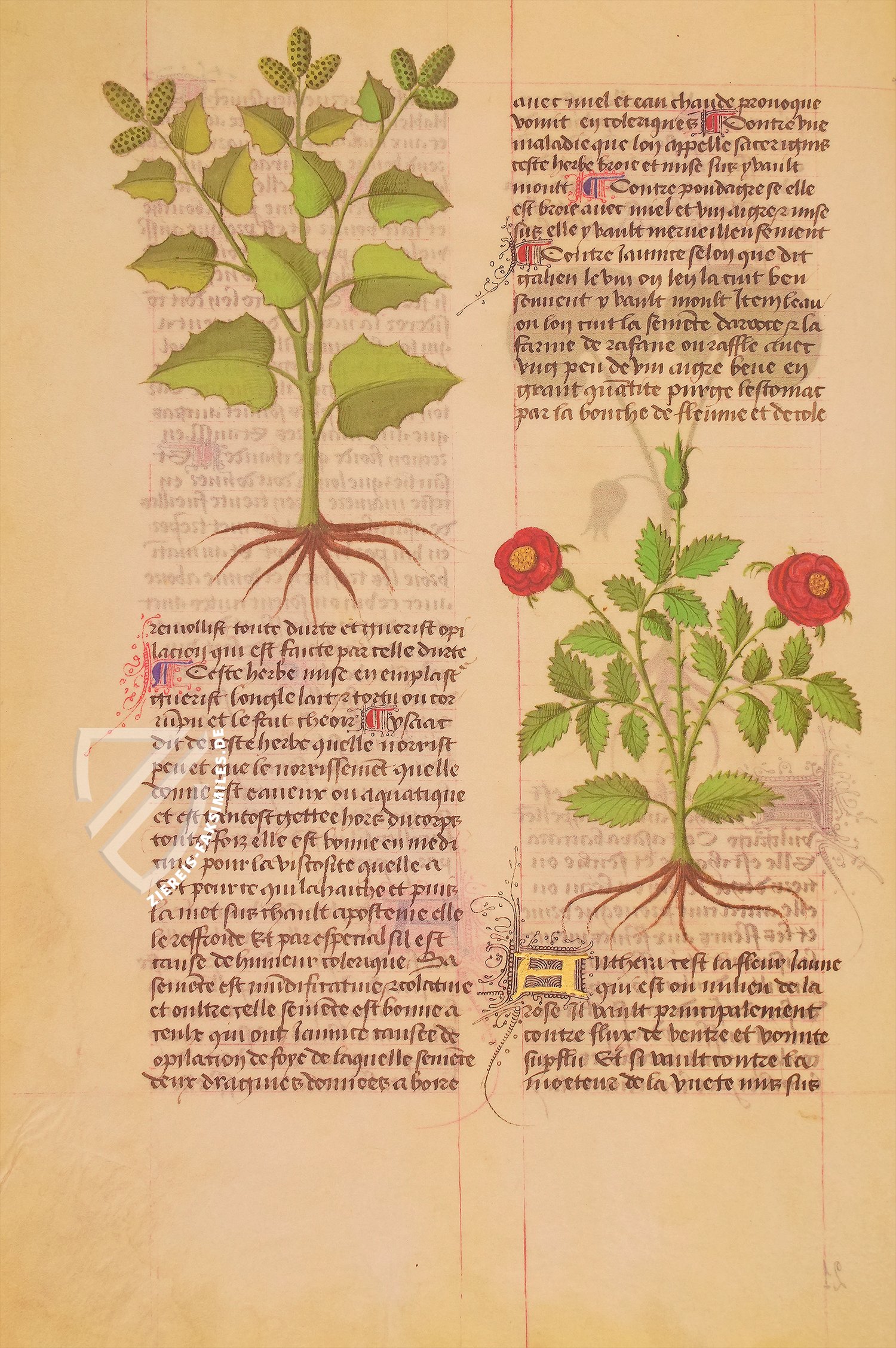Eine der berĂŒhmtesten Schriften zur Medizin und Pflanzenkunde des Mittelalters: De simplicibus medicinis des MatthĂ€us Platearius. Dieses Werk des berĂŒhmten Mediziners der Schule von Salerno fĂŒhrt 500 Pflanzen, KrĂ€uter und andere Heilmittel auf, die teilweise auch tierischen Ursprungs sind. Sie sind bemerkenswerterweise alphabetisch angeordnet, was im Mittelalter keinesfalls die Regel war. Dabei bietet der umfangreiche Text faszinierende und oft mystisch wirkende Angaben zu ihrer Gewinnung, Anwendung und Wirkung im menschlichen Körper. Diese kostbare Handschrift, die in der zweiten HĂ€lfte des 15. Jahrhunderts in Frankreich geschaffen wurde, enthĂ€lt den einflussreichen Text in französischer Ăbersetzung und ist herrlich illuminiert mit wunderschönen Darstellungen der vorgestellten Heilmittel. Hinzu kommen kostbare, vergoldete Zierinitialen, die den Wohlstand des unbekannten Auftraggebers und den ReprĂ€sentationszweck der Handschrift deutlich machen. Dieser Codex wurde nicht jeden Tag von einem Arzt benutzt, sondern stellte die Gelehrtheit seines Besitzers zur Schau.