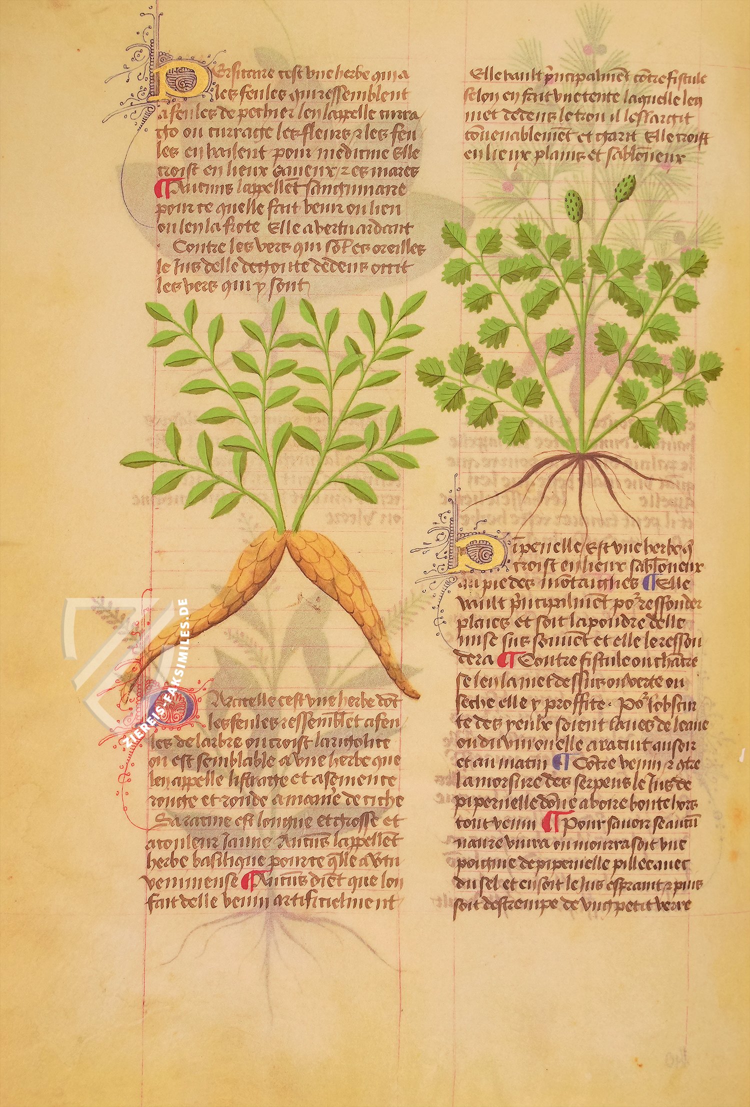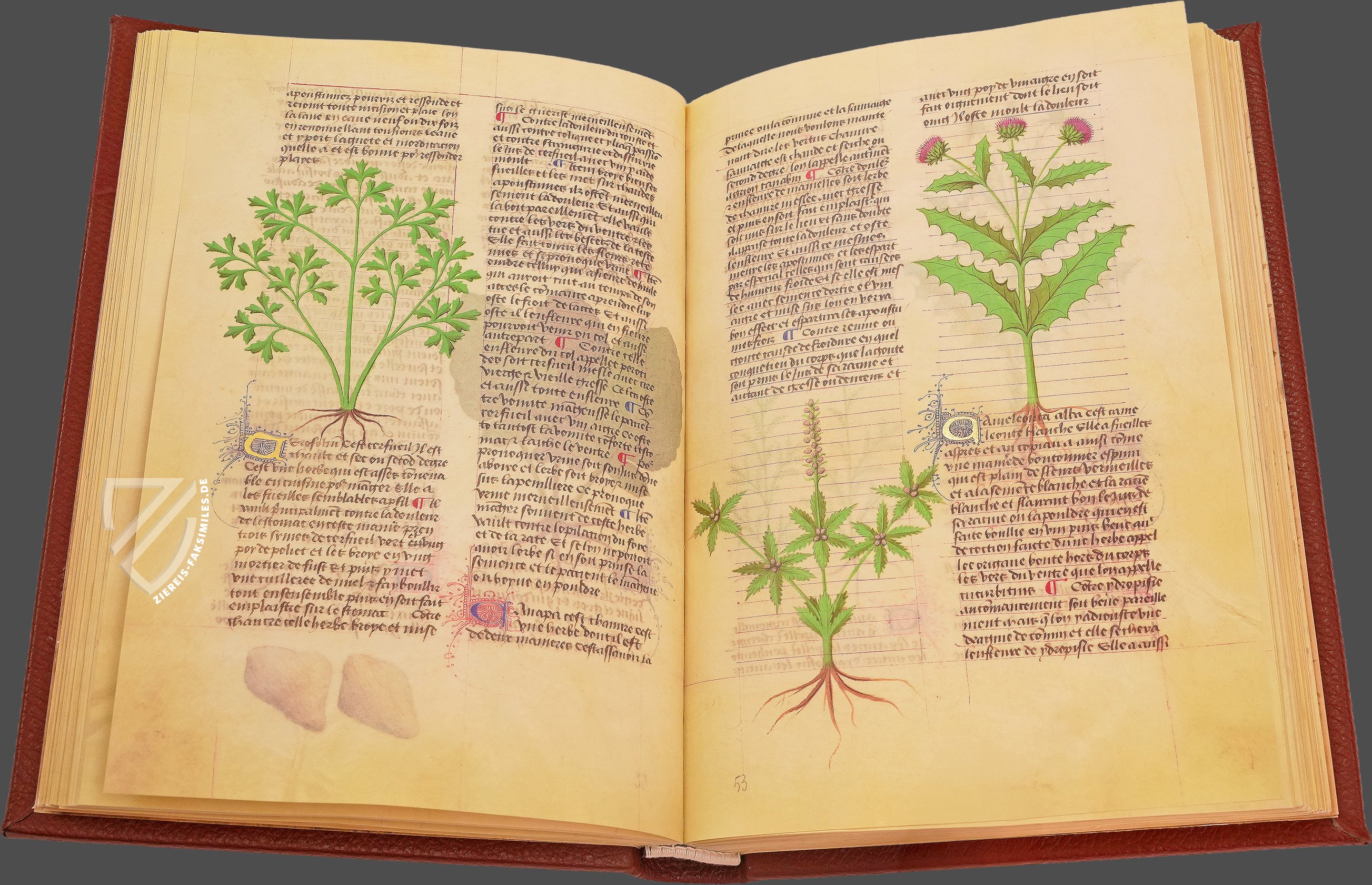 Zwei Herbarien aus dem 15. Jahrhundert werden in der Biblioteca Estense Universitaria in Modena aufbewahrt. Eines davon ist das berĂŒhmte Herbolaire, auch bekannt als das Grant Herbier. Diese wunderbare Handschrift ist eine umfassende illustrierte Ausgabe des medizinisch-botanischen Textes von De simplicibus medicinis von Platearius. Der wissenschaftliche Codex bildet die Grundlage einer französischen Ăbersetzung mit dem Titel Livre des simples medicinis, die aus Frankreich in der zweiten HĂ€lfte des 15. Jahrhunderts stammt.