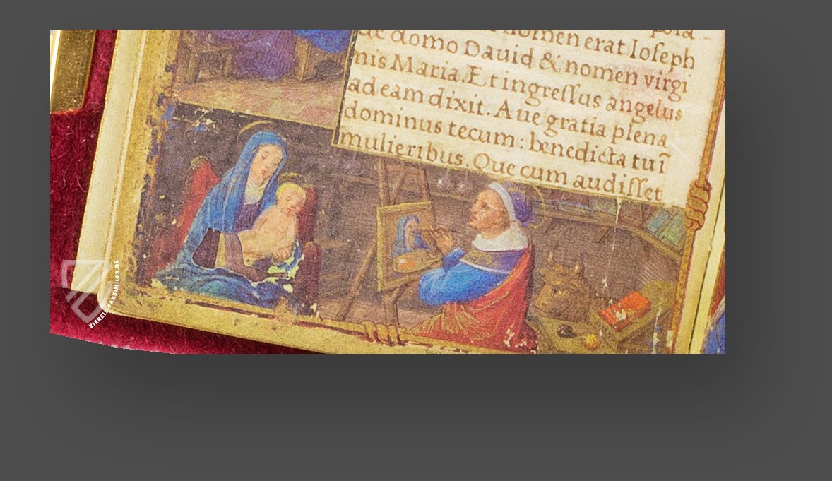Claude de France, die Tochter der Anne de Bretagne und LouisÂŽ XII., stammte aus einer Familie, die im mittelalterlichen Frankreich als Liebhaber und Förderer der schönen KĂŒnste galt. Sie wuchs umgeben von kostbaren GemĂ€lden und wertvollen Bilderhandschriften auf. 1514 heiratete sie den spĂ€teren König François I., der ebenfalls als Kunstförderer galt und engen Kontakt mit dem italienischen Universalgelehrten Leonardo da Vinci pflegte. Zu ihrer Krönung 1517 wĂŒnschte Claude sich ein persönliches Geschenk, ein kleines Gebetbuch, das sie stets bei sich tragen konnte. Ihr Lieblingsmaler gestaltete das Werk und verwendete dabei drei Mal das persönliche Wappen der Königin, das sie selbst auf zwei der Darstellungen mit goldener Krone zeigt.