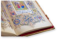 Das prachtvolle Gebetbuch des Lorenzo de‘ Medici (1449–1492) war ein Hochzeitsgeschenk an seine älteste Tochter Lucrezia (1470–1553), die 1486 den Florentiner Bankier Jacopo Salviati (1461–1533) heiratete. Der vergoldete Silbereinband mit feinen, eingearbeiteten Emailarbeiten verrät dem Betrachter direkt um was für eine kostbare Handschrift es sich handelt. Hinter ihm verbergen sich auf 556 Seiten zehn prächtige ganzseitige Miniaturen, zwölf kunstvolle Kalendermedaillons und sieben große historisierte Initialen, die von überbordenden, goldleuchtenden Bordüren eingefasst werden. Die frommen Gebetstexte wurden von dem talentierten Schreiber Antonio Sinibaldi (1443 – vor 1528) teils in goldener und strahlend blauer Tinte auf das Pergament gebracht, während die prächtigen Bildwerke aus der Feder des von den Medicis bevorzugten Miniaturenmalers Francesco Rosselli (1455–1513) stammen, der damit ein wahrlich prachtvolles Renaissance-Meisterwerk schuf.