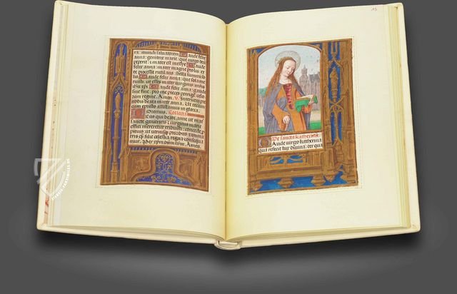 Die Miniaturen der Handschrift stammen durchweg von KĂŒnstlern, die als die GröĂten ihrer Zeit bekannt wurden: Simon Bening, Nikolaus und Albrecht Glockendon, Sebald Beham. FlĂ€mische KĂŒnstler und NĂŒrnberger Meister der ersten HĂ€lfte des 16. Jahrhunderts malten die insgesamt 44 herrlichen und qualitativ herausragenden Miniaturen. Ungewöhnlicherweise sind neun der Miniaturen im Gebetbuch jeweils in ein Passepartout eingenĂ€ht. Aus Werken von Simon Bening, Nikolaus Glockendon dem Ălteren, Sebald Beham und Albrecht Glockendon wurden einzelne BlĂ€tter zu verschiedensten biblischen Themen bunt zusammengestellt. Diese Fragmente aus verschiedenen Handschriften enthalten unter anderem Darstellungen mehrerer Apostel, aber auch Heiligendarstellungen, etwa Christophorus mit dem Christusknaben oder Georg im Drachenkampf. AuĂerdem finden sich Szenen aus dem Leben Christi und mit starkem Bezug zu Maria, unter anderem eine VerkĂŒndigungsszene in einem Kirchenraum und die Heimsuchung. Weitere Miniaturen zeigen den Bethlehemitischen Kindermord, Bathseba im Bade oder den Kampf des David gegen Goliath.