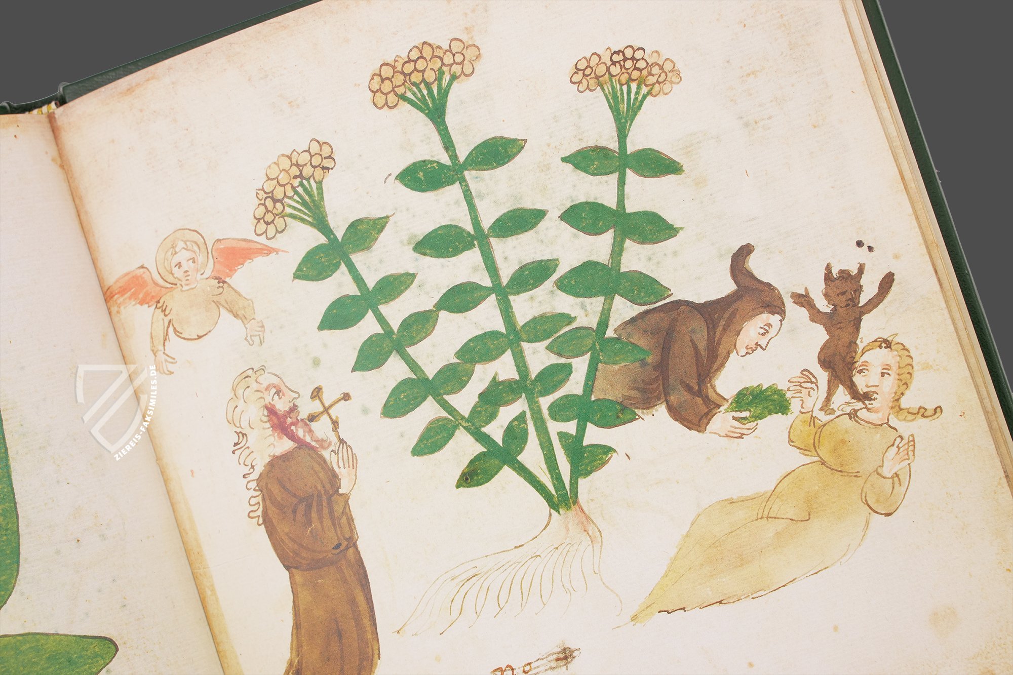Die wohl berühmteste Bibliothek medizinischer Werke aus dem Mittelalter, die Biblioteca Medicea Laurenziana in Florenz beherbergt eine künstlerisch wie geschichtlich herausragende Bilderhandschrift des 15. Jahrhunderts: Die Geheimnisse der Medizin. Der einzigartige Codex beinhaltet die medizinische Heilwirkung vielerlei Pflanzen und deren Anwendung. Ober Juckreiz, Kopfschmerzen, Frauenleiden oder Verdauungsprobleme, der Leser erfährt zu einer Vielzahl auch heute noch auftretender Beschwerden, wie diese mit der geheimen Heilkraft der Pflanzen gelindert oder gar geheilt werden können. Besonders die farbenfrohen Pflanzendarstellungen, die oft von phantasievollen Menschen- und Tierdarstellungen begleitet werden, üben auch auf den heutigen Betrachter eine außergewöhnliche Faszination aus.