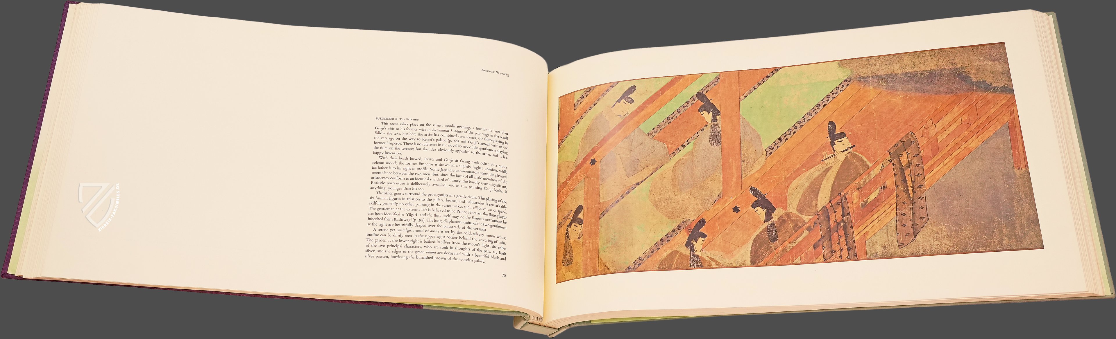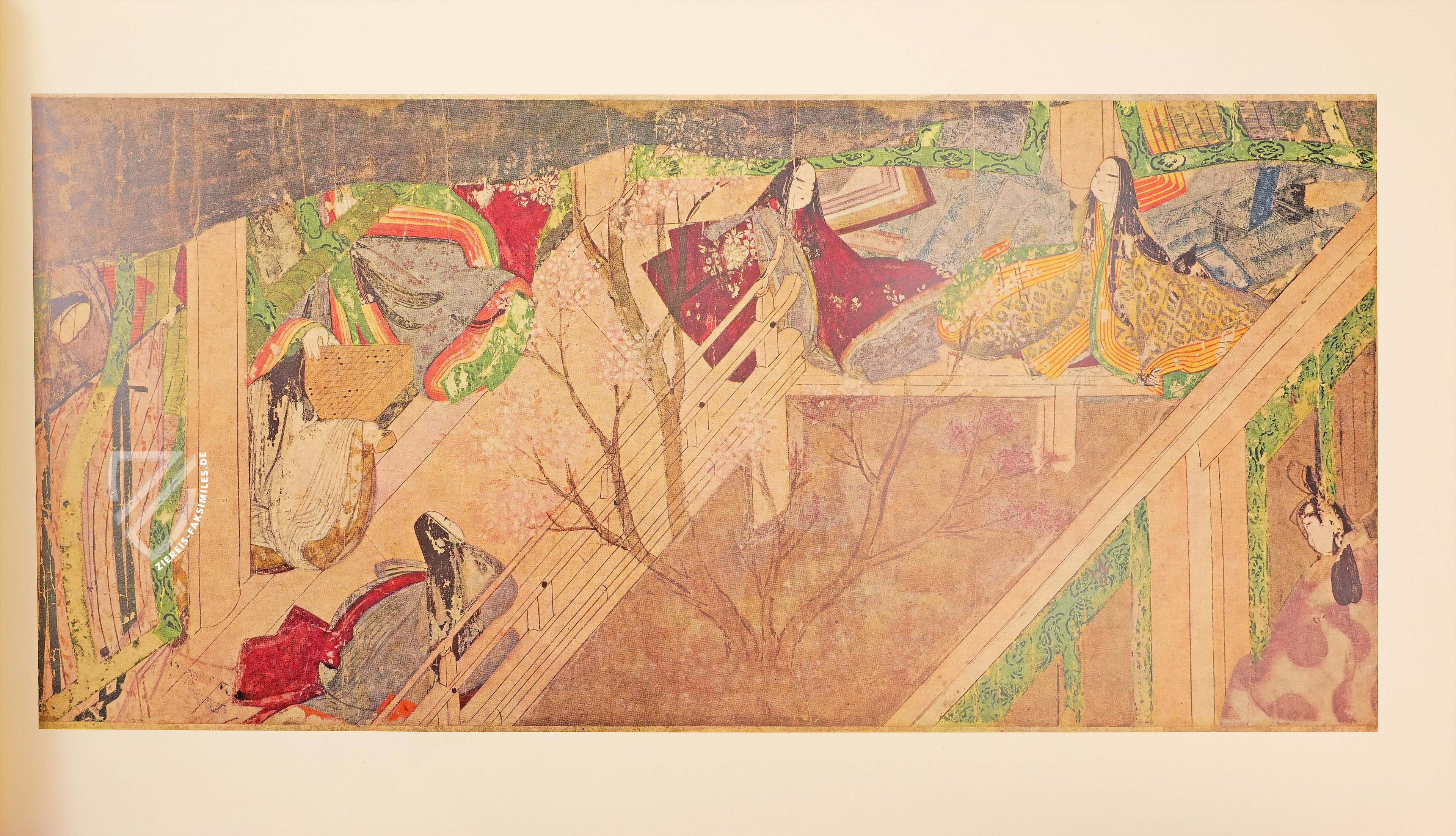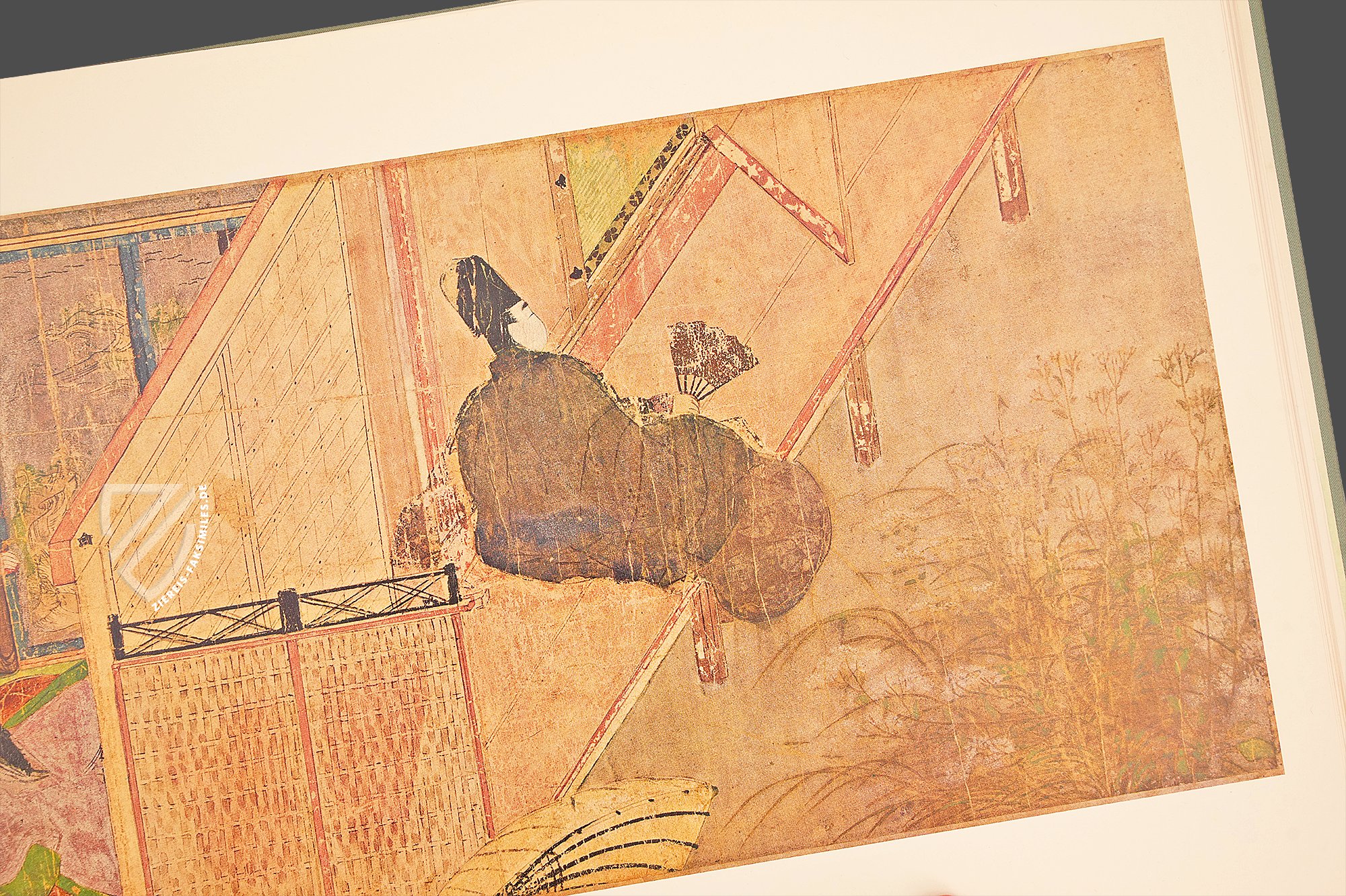 Dieser Klassiker der japanischen Literaturgeschichte gilt nicht nur als der erste moderne, psychologische Roman, sondern als der erste Roman der Weltliteratur überhaupt. Abgesehen von derlei Klassifikationsdebatten ist die Geschichte vom Prinzen Genji nicht zuletzt wegen der Identität seiner Schöpferin bemerkenswert, denn das Werk stammt aus der Feder einer Frau, Murasaki Shikibu (ca. 973/78 – ca. 1014/31), einer Hofdame am Kaiserhof im Japan der Heian-Zeit, die auch als Schriftstellerin und Dichterin tätig war. Der Roman entstand zu Beginn des 11. Jahrhunderts und markiert den Höhepunkt der japanischen Heian-Zeit - Heian bedeutet im Japanischen wörtlich Friede – einer Epoche also, in der große Stabilität im Land herrschte und ein goldenes Zeitalter der Künste anbrach. Am Hof von Heian kamen in dieser Zeit Kunst, Dichtung und Literatur zu einer ersten Blüte. Murasaki Shikibus Meisterwerk ist eine intime Beschreibung des Lebens am Kaiserhof, mit besonderem Augenmerk auf denSitten der aristokratischen Gesellschaft dieser Zeit und ihren romantischen Verstrickungen. Es erzählt die Lebensgeschichte des Hikaru Genji, des “Leuchtenden Prinzen”, sogenannt wegen seiner außerordentlichen Schönheit und Verstandeskraft. Genji ist der Sohn des Kaisers Kiritsubo und dessen niedrig geborener, doch bevorzugter Konkubine. Aus politischen Gründen von der regulären Thronfolge ausgeschlossen, verfolgt Prinz Genji eine Laufbahn am kaiserlichen Hof und vor allem allerlei Liebesbeziehungen. In der Schilderung der amourösen Abenteuer und Missgeschicke des Protagonisten entrollt dieses literarische Meisterwerk vor dem inneren Auge des Lesers ein Panorama des Lebens am japanischen Kaiserhof vor tausend Jahren. Die unter der Bezeichnung Genji Monogatari Emaki bekannte Bilderrolle von der Erzählung über den Prinzen Genji ist die älteste schriftlich überlieferte Version dieses Werks. In den kunstvollen Illustrationen fällt besonders der Kontrast zwischen einer realistischen Architekturdarstellung und einer reduzierten, typisierten Zeichnung der Gesichter auf.