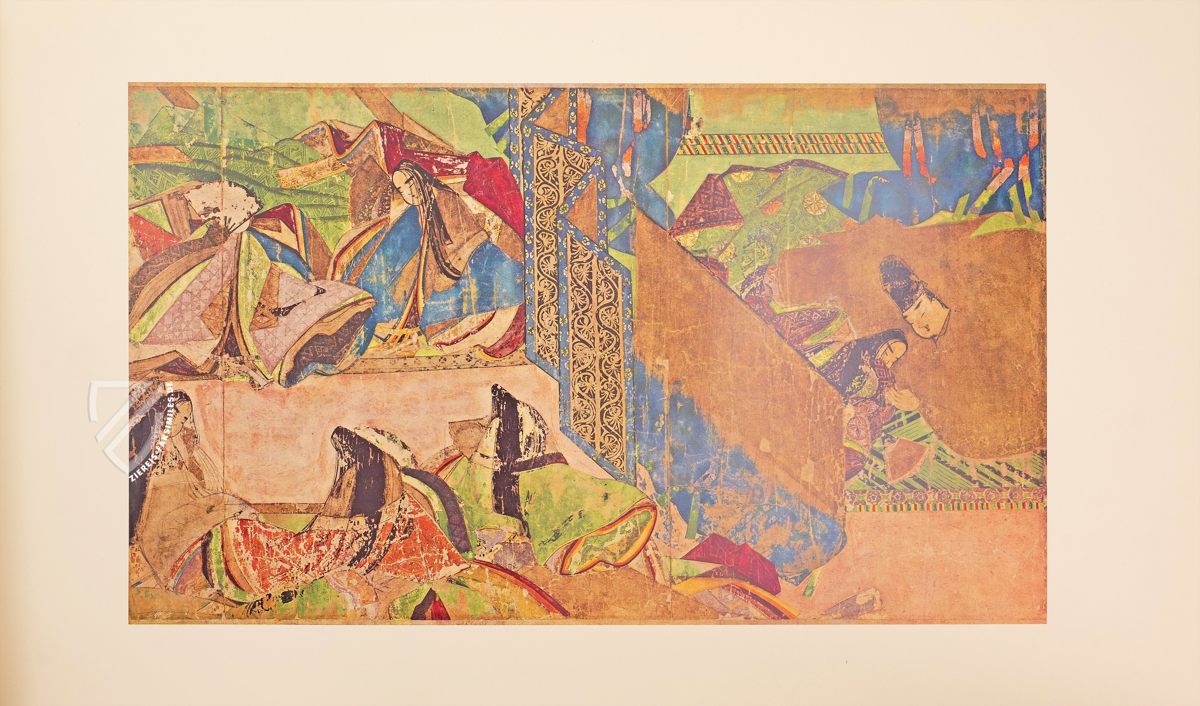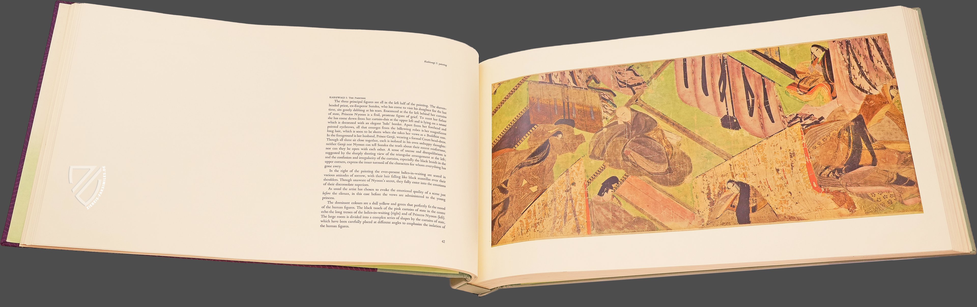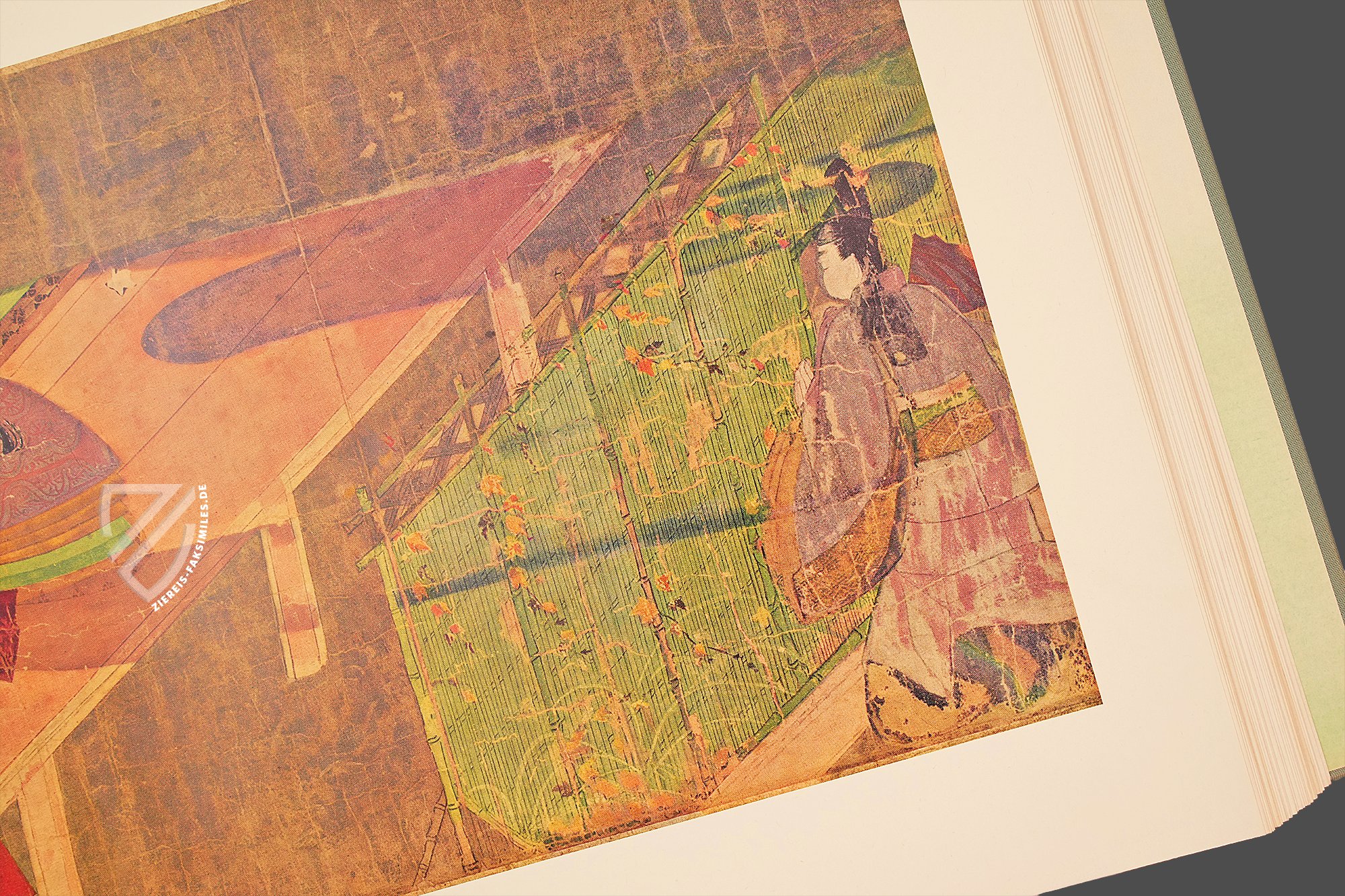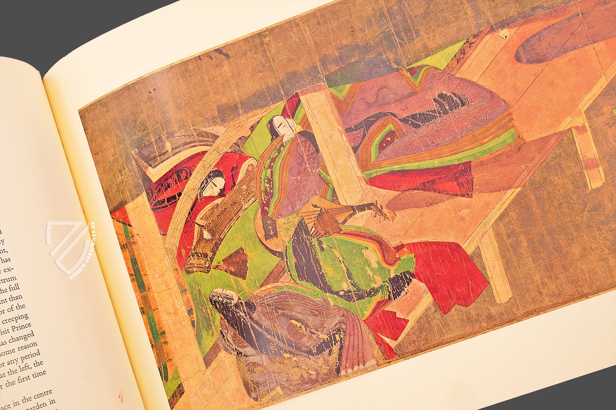 Dieser Klassiker der japanischen Literaturgeschichte gilt nicht nur als der erste moderne, psychologische Roman, sondern als der erste Roman der Weltliteratur überhaupt. Abgesehen von derlei Klassifikationsdebatten ist die Geschichte vom Prinzen Genji nicht zuletzt wegen der Identität seiner Schöpferin bemerkenswert, denn das Werk stammt aus der Feder einer Frau, Murasaki Shikibu (ca. 973/78 – ca. 1014/31), einer Hofdame am Kaiserhof im Japan der Heian-Zeit, die auch als Schriftstellerin und Dichterin tätig war. Der Roman entstand zu Beginn des 11. Jahrhunderts und markiert den Höhepunkt der japanischen Heian-Zeit - Heian bedeutet im Japanischen wörtlich Friede – einer Epoche also, in der große Stabilität im Land herrschte und ein goldenes Zeitalter der Künste anbrach. Am Hof von Heian kamen in dieser Zeit Kunst, Dichtung und Literatur zu einer ersten Blüte. Murasaki Shikibus Meisterwerk ist eine intime Beschreibung des Lebens am Kaiserhof, mit besonderem Augenmerk auf denSitten der aristokratischen Gesellschaft dieser Zeit und ihren romantischen Verstrickungen. Es erzählt die Lebensgeschichte des Hikaru Genji, des “Leuchtenden Prinzen”, sogenannt wegen seiner außerordentlichen Schönheit und Verstandeskraft. Genji ist der Sohn des Kaisers Kiritsubo und dessen niedrig geborener, doch bevorzugter Konkubine. Aus politischen Gründen von der regulären Thronfolge ausgeschlossen, verfolgt Prinz Genji eine Laufbahn am kaiserlichen Hof und vor allem allerlei Liebesbeziehungen. In der Schilderung der amourösen Abenteuer und Missgeschicke des Protagonisten entrollt dieses literarische Meisterwerk vor dem inneren Auge des Lesers ein Panorama des Lebens am japanischen Kaiserhof vor tausend Jahren. Die unter der Bezeichnung Genji Monogatari Emaki bekannte Bilderrolle von der Erzählung über den Prinzen Genji ist die älteste schriftlich überlieferte Version dieses Werks. In den kunstvollen Illustrationen fällt besonders der Kontrast zwischen einer realistischen Architekturdarstellung und einer reduzierten, typisierten Zeichnung der Gesichter auf.
