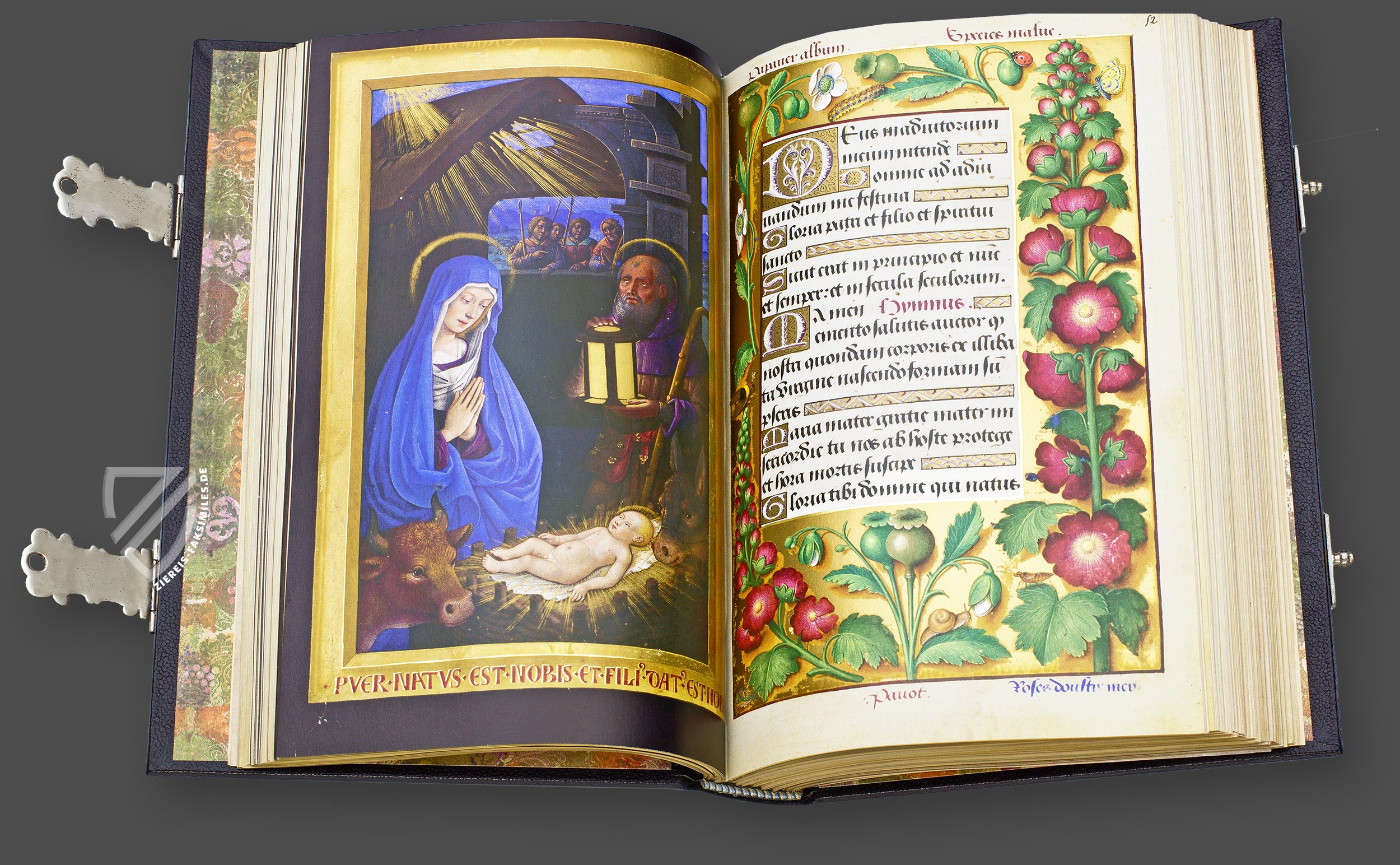 Die Grandes Heures der Anne de Bretagne wurden zwischen 1503 und 1508 vom berĂźhmten Hofmaler Jean Bourdichon im Auftrag der KĂśnigin von Frankreich, Sizilien und Jerusalem Anne de Bretagne geschaffen. Das private Gebetbuch der bedeutenden Mäzenin ist mit fast 50 ganzseitigen Miniaturen und prachtvollen BordĂźren mit 337 naturalistischen Pflanzendarstellungen ausgestattet, die nicht nur Buchschmuck sind, sondern zugleich als Herbarium dienen: Jeder Pflanze ist ihre lateinische Bezeichnung beigegeben. Die atemberaubenden Miniaturen erinnern hingegen ob ihrer Qualität und GrĂśĂe an die groĂen Tafelgemälde der Renaissance und erhalten durch den subtilen Einsatz von Gold eine ganz besondere Pracht. Das wertvolle, royale Stundenbuch gilt als eine der bedeutendsten illuminierten Handschriften aller Zeiten und zog unter anderem den SonnenkĂśnig Ludwig XIV. sowie Napoleon III. in seinen Bann, bevor es Teil der umfangreichen Sammlungen der franzĂśsischen Nationalbibliothek wurde.