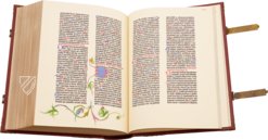 Von den 180 herausgegebenen und 48 erhaltenen, zweibĂ€ndigen Exemplaren der berĂŒhmten Gutenberg-Bibel befindet sich ein Exemplar in der Biblioteca PĂșblica del Estado in der spanischen Stadt Burgos. Der wertvolle FrĂŒhdruck des historischen Meisterwerkes wurde in den Jahren zwischen 1452 und 1454 in der Mainzer Werkstatt Gutenbergs gedruckt. Die handschriftliche Vorlage fĂŒr die gedruckte Bibel war eine sogenannte Vulgata, eine Ăbersetzung der BĂŒcher des Alten und Neuen Testaments vom Heiligen Hieronymus aus dem 4. Jahrhundert. Der lateinische Text wurde in zwei BĂ€nden auf insgesamt 1254 von Hand dekorierten und illustrierten PapierblĂ€ttern in einem engen Zeilensystem gedruckt. Das Werk wird auch als 42-zeilige Bibel bezeichnet, da jede Textseite 42 Zeilen enthĂ€lt. Die illuminierte Bibel ist, wie jede der heute noch erhaltenen Bibeln Gutenbergs, ein wunderschönes, hochwertiges Unikat und eine absolute Kostbarkeit fĂŒr jeden Bibliophilen.