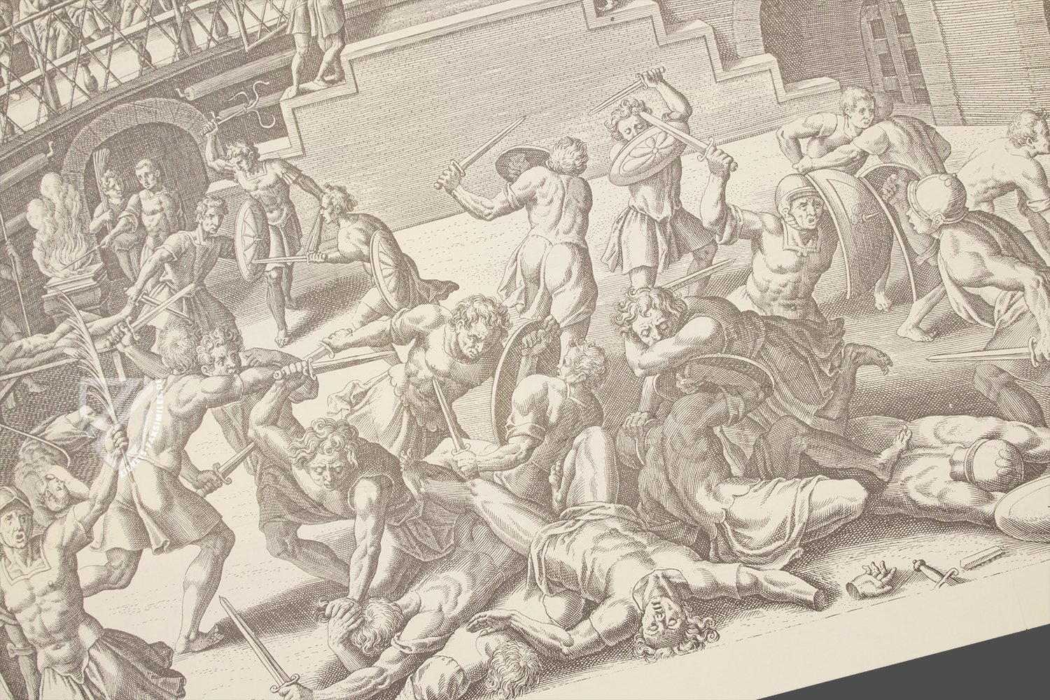 Girolamo Mercuriale (1530–1606) war ein weitreichend studierter und viel gereister, italienischer Arzt und später Professor für Medizin und erlangte vor allem höchste Anerkennung für seine Tätigkeit als Leibarzt Kaiser Maximilians II. (1527–1576), für die er sogar in den Adelsstand erhoben wurde. Hierbei wendete er auch Prinzipien an, die er in seinem bekanntesten Werk De Arte Gymnastica niederschrieb, das noch lange nach seinen Lebzeiten ein medizinischer Bestseller bleiben sollte. Die Kunst der Gymnastik ist das erste europäische Werk, das sich alleinig mit der medizinischen Wirkung körperlicher Ertüchtigung beschäftigt. Mercuriale verarbeitete hierin antike Gesundheits- und Sport-Lehren, die seinerzeit großen Anklang fanden. Eine der schönsten und am reichsten illuminierten Ausgaben des Werks wurde 1672 bei Andreas Frisius in Amsterdam gedruckt. Sie ist mit 36 meisterlichen, ganzseitigen Kupferstichen von Cristoforo Coriolano ausgestattet, von denen einige sogar doppelseitig und ausklappbar sind. Ein Schmuckstück der medizinischen Literatur!