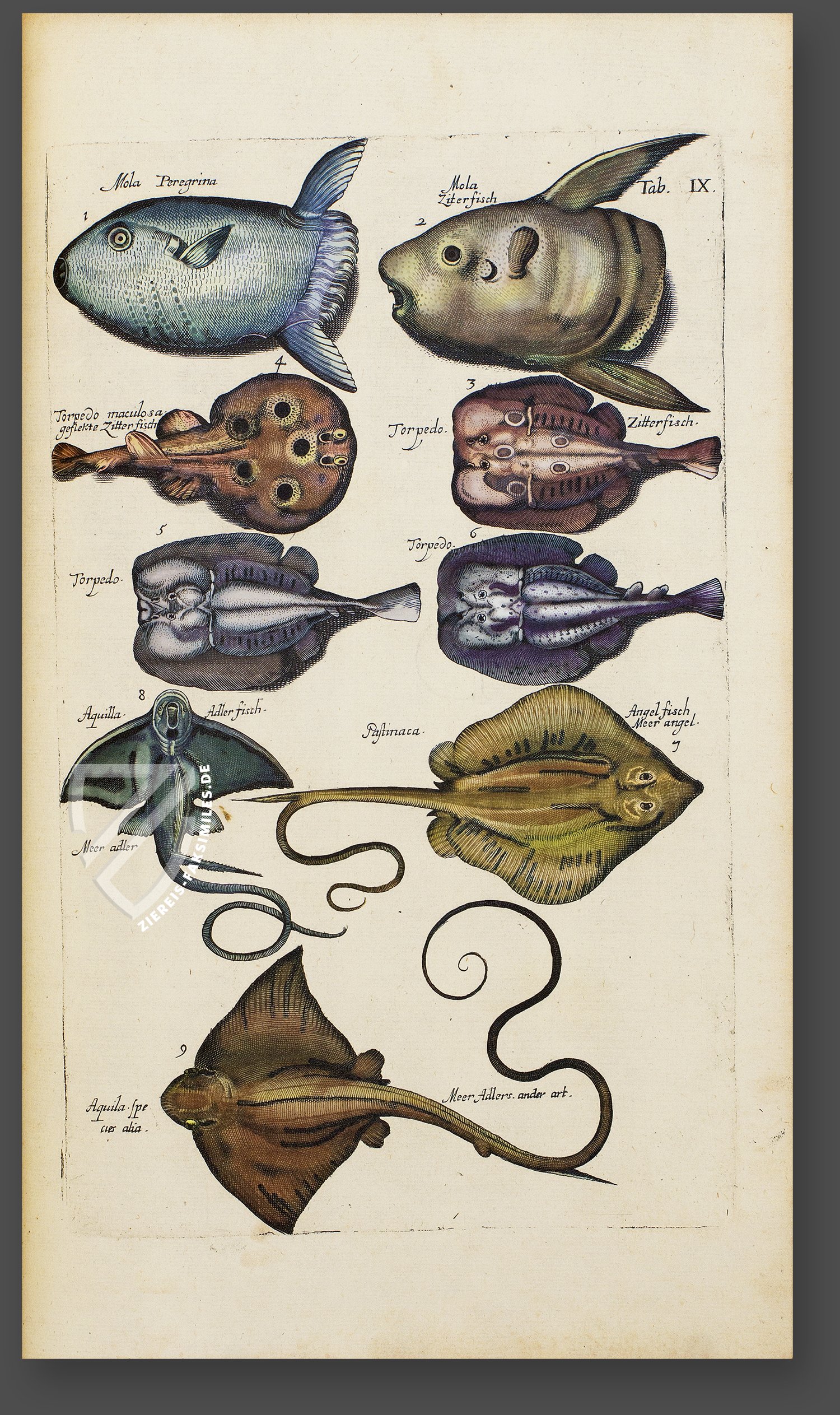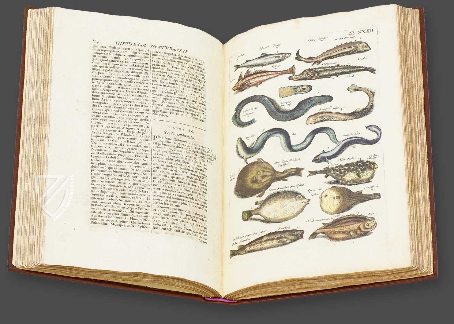 Der polnische Arzt und Universalgelehrte Johannes Jonstonus verfasste in den Jahren um die Mitte des 17. Jahrhunderts ein enzyklopädisches Übersichtswerk zur Geschichte der Tiere, das ein Jahrhundert lang als das Standardwerk der Tierkunde galt. Seine Historia naturalis animalium versammelte in fünf Büchern zahlreiche Beschreibungen von Tieren. Tafeln mit wunderbaren Kupferstichen von Matthäus Merian d. J. illustrieren das zoologische Werk. Im ersten Band seiner Reihe, der im Jahr 1650 erschien, befasste sich Jonstonus mit den Fischen und Meeressäugern. Dieses „am meisten verbreitete Handbuch der Tierkunde“ erfuhr zahlreiche Neuauflagen und Übersetzungen in andere Sprachen und bietet noch heute einen herrlichen Einblick in die Welt der Zoologie.