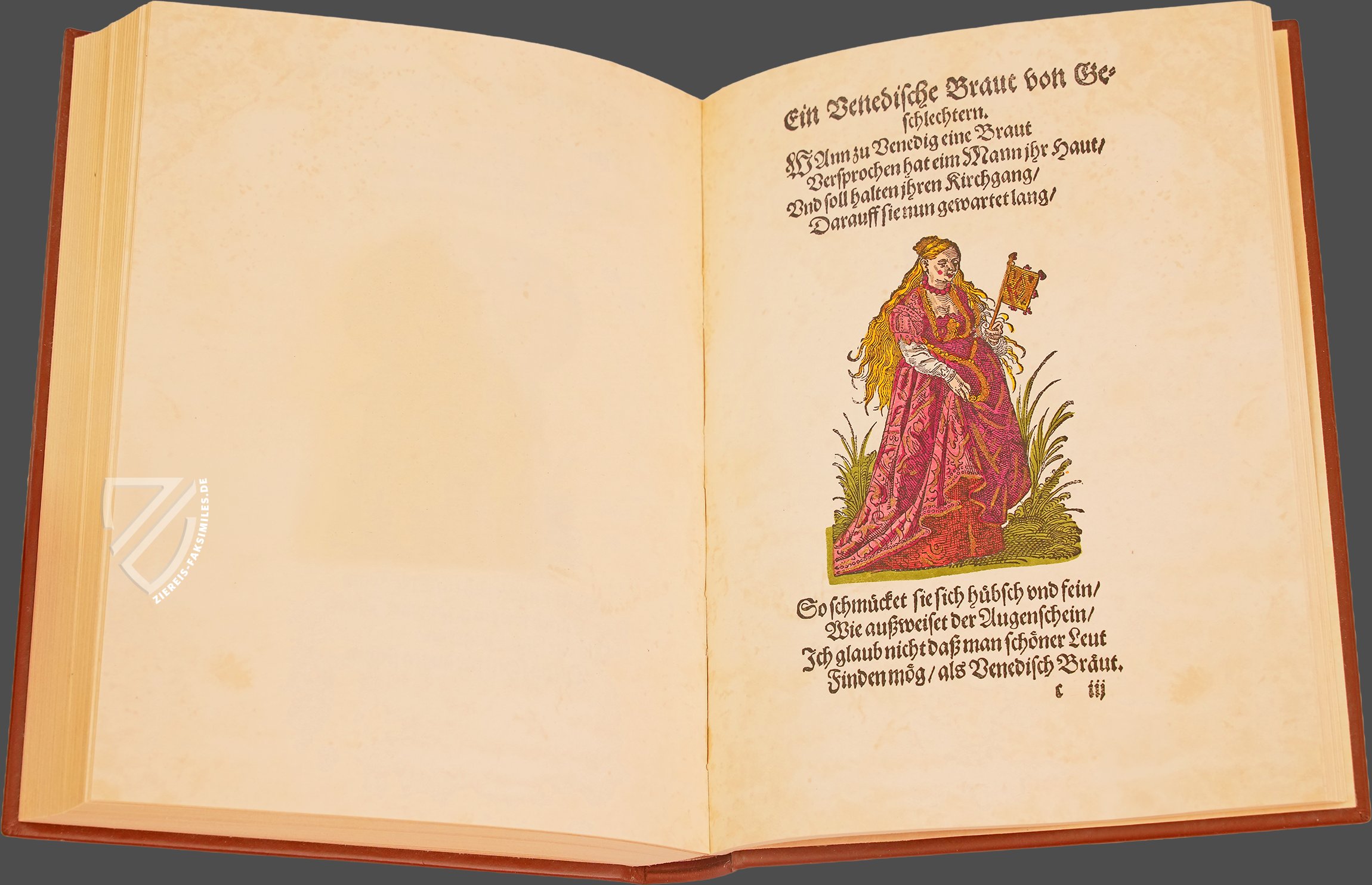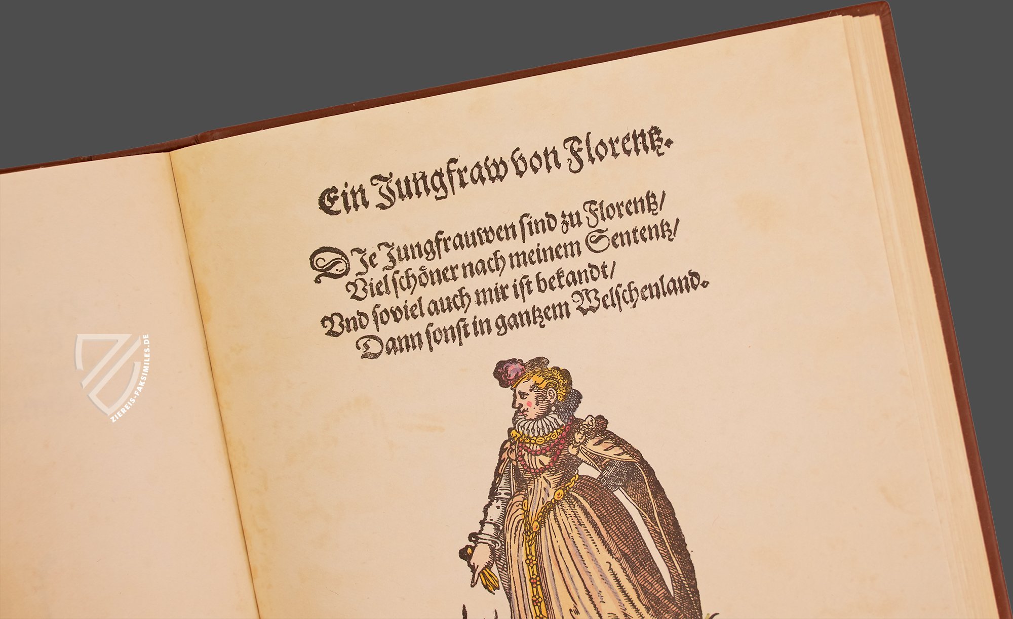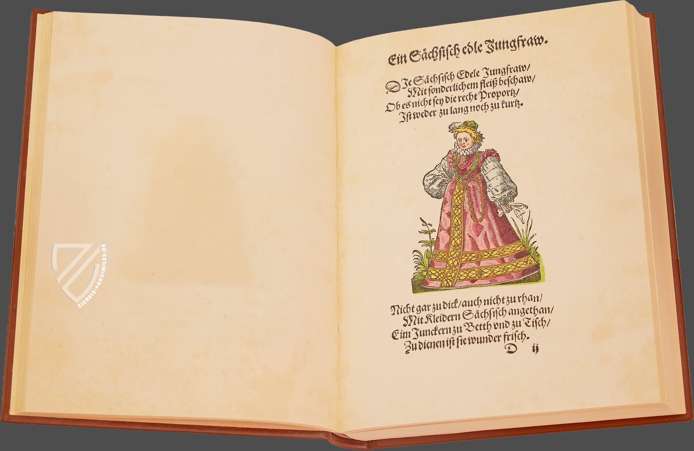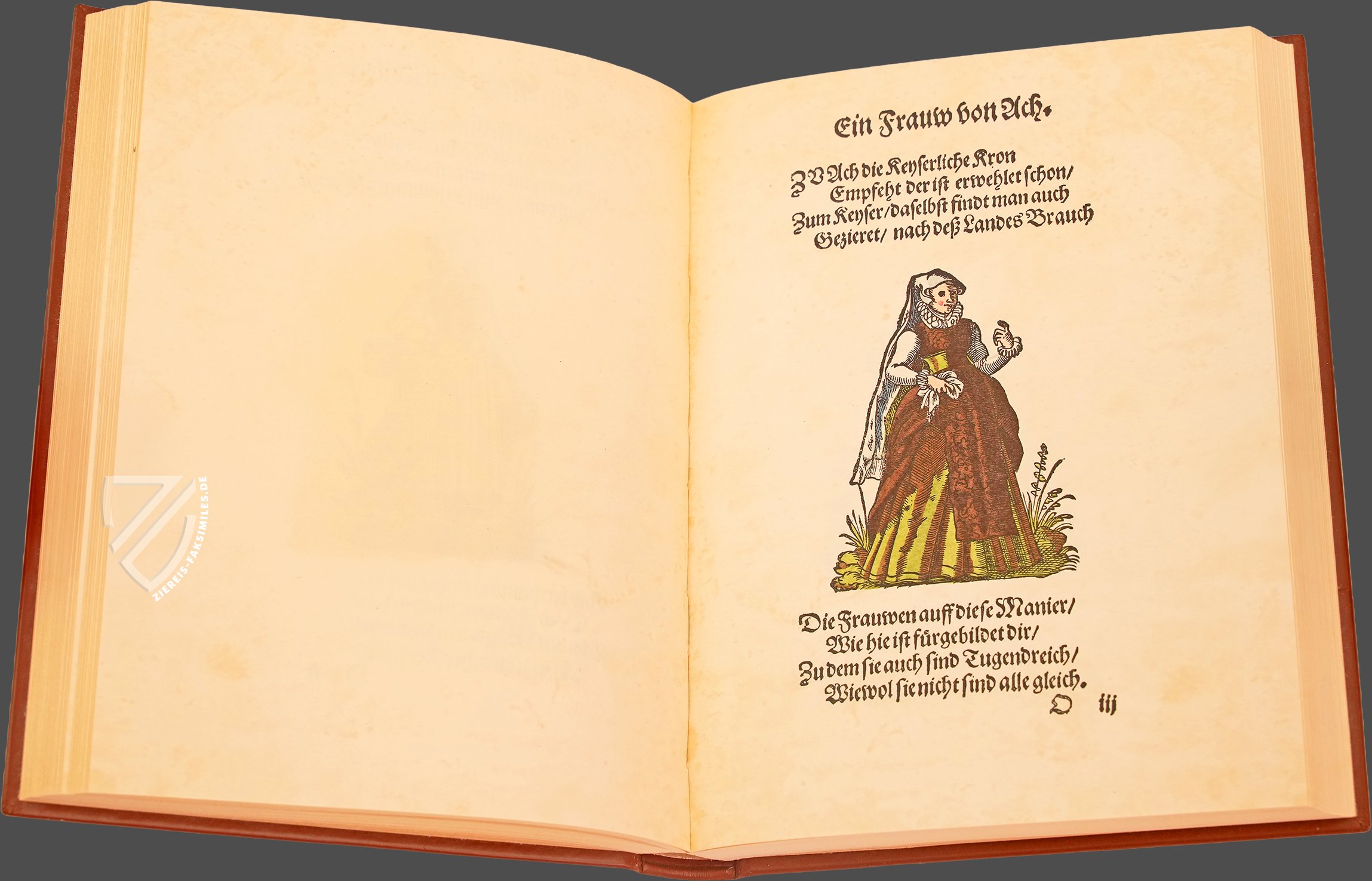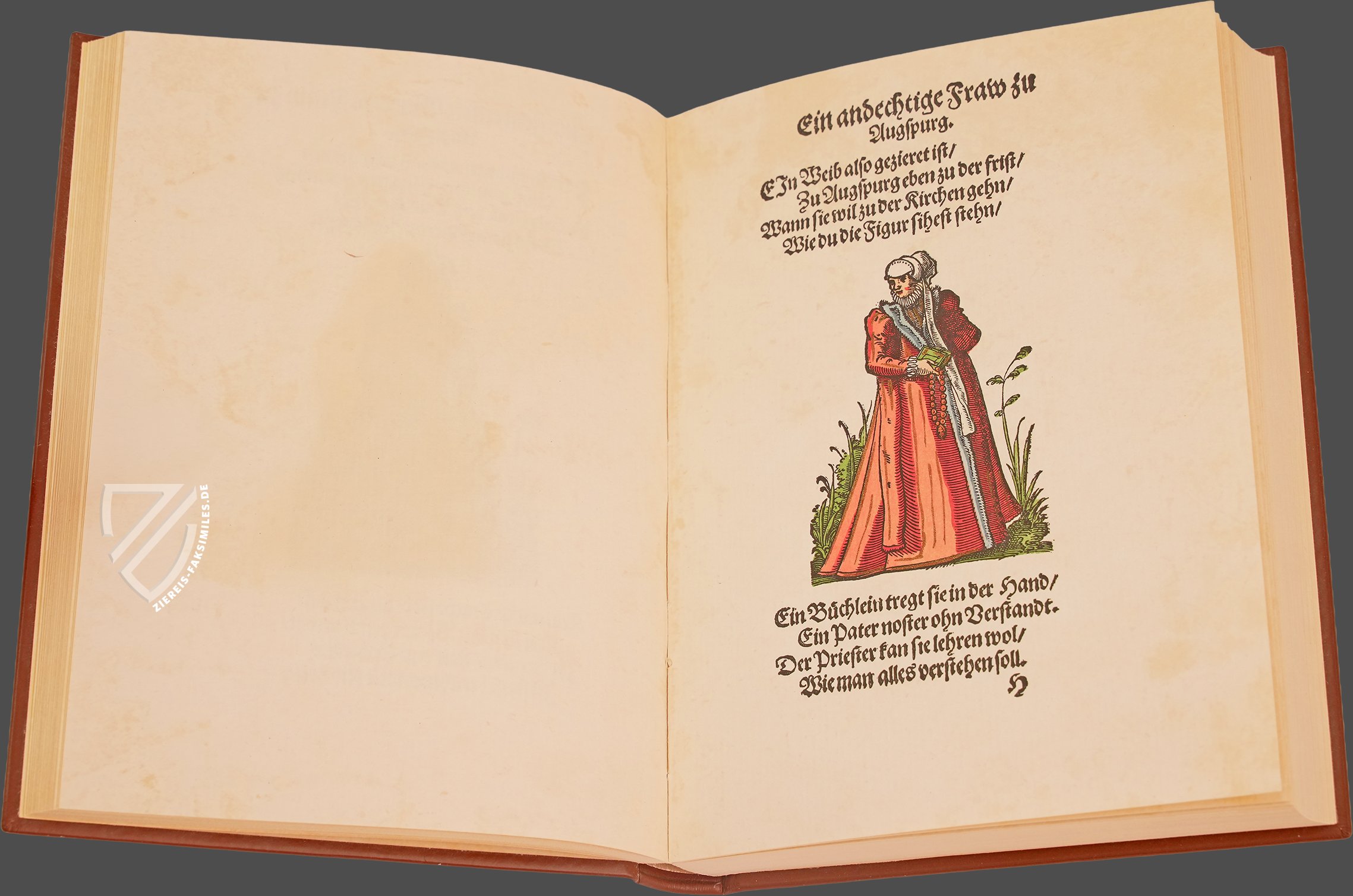 Jost Amman (1539–1691) gehört ohne Frage zu den bedeutendsten und produktivsten Zeichnern, Kupferstechern und Formschneidern der nordalpinen Renaissance. Der in Nürnberg aktive Künstler bediente zahlreiche Genres und Techniken, wobei seine alltagsnahen Darstellungen von zeitgenössischen Berufen und Trachten besonders bemerkenswert sind. Sie zeichnen sich durch alltagsnahe und detailgenaue Beobachtungen aus, die Amman in verschiedene Medien übertrug. Einen besonders faszinierenden kulturhistorischen Einblick in die gesellschaftlichen Hierarchien und die europäischen Damenmoden des 16. Jahrhunderts geben die 122 hochwertigen Holzschnitte seines Frauentrachtenbuchs, das 1586 von Sigmund Feyerabend (1528–1590) in Frankfurt publiziert wurde. Es zeigt die typische Kleidung von Frauen aller Stände in den damaligen urbanen Zentren Europas – von der einfachen Landarbeiterin bis zur erlauchten Kaiserin. Jedem der kunstvollen Illustrationen sind dabei kurzweilige Verse hinzugefügt, die das Werk abrunden.