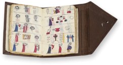 166 Seiten im Format von 7,7 x 5,5 cm prƤsentieren eine Unmenge an herrlichen Zeichnungen. Diese schnellen Federzeichnungen sind wunderbar bunt laviert und erwecken den Eindruck eines Bilderbuchs. Kein Text lenkt von diesen Bildern ab, nur Symbole wie das Kreuz erklƤren den Kontext der Zeichnungen. Die Bilder prƤsentieren die Grundlagen des christlichen Glaubens, wie das Kreuzzeichen, das Vaterunser, das Avemaria, die 10 Gebote, die Sakramente oder die Werke der Barmherzigkeit in herrlichen Darstellungen. Die christliche Lehre sollte den Indios mit Bildern und Zeichen vermittelt werden, die ihnen bereits bekannt waren.
