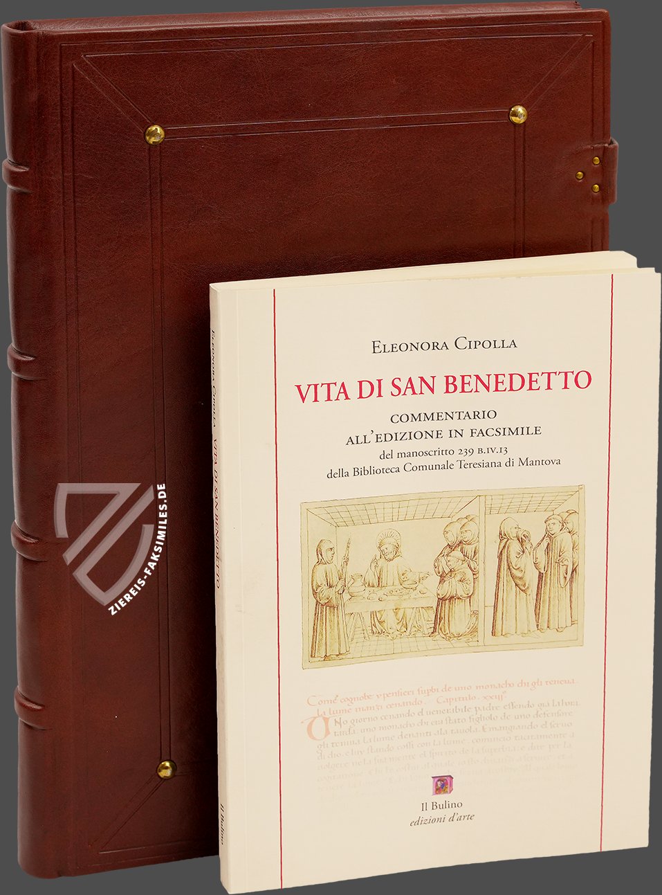 Diese prachtvoll gestaltete Handschrift, die mehr als 900 Jahre nach seinem Tod entstand, illustriert kunstvoll das Leben des heiligen Benedikt (480–540), des verehrten Vaters des abendländischen Mönchtums, und zeugt von dem nachhaltigen Einfluss, den er auf die Kirche hatte. Die Informationen über das Leben des heiligen Benedikt stammen hauptsächlich aus zwei Quellen, zum einen aus dem Buch 2 der Dialoge des heiligen Gregor des Großen, das angeblich auf den Berichten von vier Schülern Benedikts beruht, und zum anderen aus einem Gedicht, das von einem Mönch in Montecassino nach seinem Tod verfasst wurde. Diese Handschrift und ihre 87 meisterhaften Federzeichnungen stellen sowohl historisch zuverlässige Ereignisse als auch volkstümliche Legenden aus dem Leben des Heiligen dar und setzen sie in die Pracht der italienischen Renaissance.