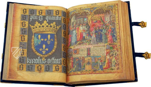 Einer der bedeutendsten mittelalterlichen Monarchen, der das „Ideal eines christlichen Herrschers“ im 13. Jahrhundert neu definierte, war König Ludwig IX. von Frankreich, genannt der Heilige. Seine Person und sein Wirken boten Stoff für unzählige Chroniken, Biographien und Wundererzählungen, die zum Teil in herrlichen Handschriften festgehalten wurden. Ein besonders schönes Exemplar ließ Kardinal Charles de Bourbon um 1480 von einem begnadeten Künstler fertigen. Dieser unter dem Namen „Meister des Kardinals Charles de Bourbon“ bekannte flämische Miniaturist stellte mit der künstlerischen Ausschmückung des Livre des faits de monseigneur saint Louis sein ganzes, herausragendes Können dar. Die prachtvoll goldgeschmückten, großformatigen Miniaturen zu der Lebensbeschreibung Ludwigs des Heiligen und Wundertaten, die sich nach seinem Tod an seinem Grab abgespielt haben sollen, bestechen durch feinste Details und wunderbare Bildkompositionen. Die französische Handschrift kann sicherlichzu den ganz großen Werken der Buchmalerei des späten 15. Jahrhunderts gezählt werden.
