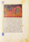 Für die erste Seite des Manuskripts schuf Cristoforo de Predis eine ganzseitige Miniatur mit den heraldischen Symbolen Galeazzo Maria Sforzas, die ganz dem luxuriösen Kunstgeschmack des Herzogs entsprach. Wie die anderen 323 Miniaturen des Werks wurde sie mit leuchtenden, kräftigen Farben und schimmerndem Blattgold geschaffen.
