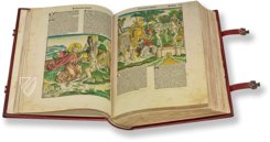 Die Schedelsche Weltchronik gilt als das größte und am reichsten illuminierte Buchprojekt der frühen Zeit des Buchdrucks. Das Mammutprojekt, das nichts geringeres im Sinn hatte als eine Chronik der Weltgeschichte von der Erschaffung der Welt bis zum Jahr 1493 zu erzählen, ist heute besonders für seine wunderschönen Stadtansichten berühmt, von denen einige als erste realistische Darstellung gelten. Für die Umsetzung scharte der Autor und Ideengeber Hartmann Schedel im gelehrten Umfeld der Nürnberger Humanisten und Künstler des späten 15. Jahrhunderts eine bemerkenswerte Gruppe aus großen Namen und betuchten Finanziers um sich: Michael Wolgemut - der Lehrer von Albrecht Dürer - und Wilhelm Pleydenwurff schufen über 1.800 atemberaubende kolorierte Holzschnitte, während Anton Koberger als talentierter Drucker für das gigantische Projekt gewonnen werden konnte. Dieses wohl ehrgeizigste Buchprojekt der Inkunabelzeit ging als bahnbrechendes Werk und bedeutendes Zeugnis der Verbindung von Kunst und Humanismus in Nürnberg, eine der zentralen Metropolen Süddeutschlands im ausgehenden Mittelalter, in die Geschichte ein.