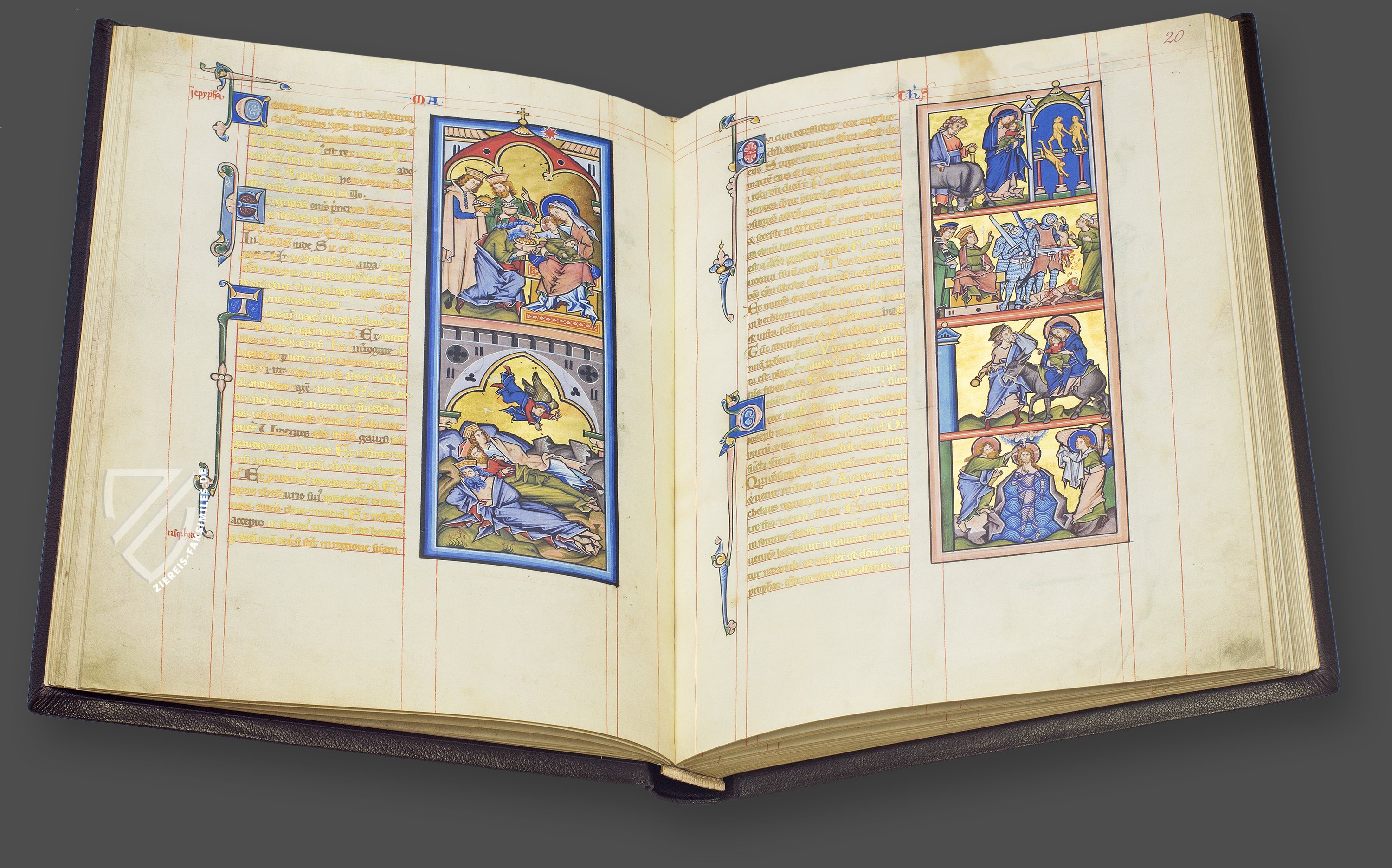 Ein einflussreiches Meisterwerk: Das Mainzer Evangeliar ist komplett mit Goldtinte in einer Schrift geschrieben, die Johannes Gutenberg als Vorbild für seine Druckschrift dienen sollte. Darüber hinaus sind die berühmten Miniaturen im Zackenstil ein Höhepunkt des 13. Jahrhunderts und erinnern an die prachtvollen Evangelienbücher der karolingischen und byzantinischen Künstler. Diese 71 meisterhaften Miniaturen mit brünierten Goldhintergründen - einige von ihnen ganzseitig - besitzen jedoch eine Dynamik und Natürlichkeit, die ihren Vorgängern noch abgeht. Von der Qualität der Materialien bis hin zur Raffinesse und Einheitlichkeit der Kunstfertigkeit ist dieses frühgotische Meisterwerk ein Wunder, nur bestaunt werden kann.