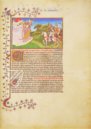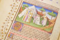 Obwohl dieses fantastische Manuskript eine Gemeinschaftsarbeit von Meistern aus dem Frankreich des frĂźhen 15. Jahrhunderts ist, stammt die Miniaturseite, mit der dieses Werk beginnt, ausschlieĂlich aus der Hand des sogenannten Mazarin-Meisters. Dies ist ein wunderbares Exemplar des spätgotischen Stils im goldenen Zeitalter der franzĂśsischen Buchmalerei.