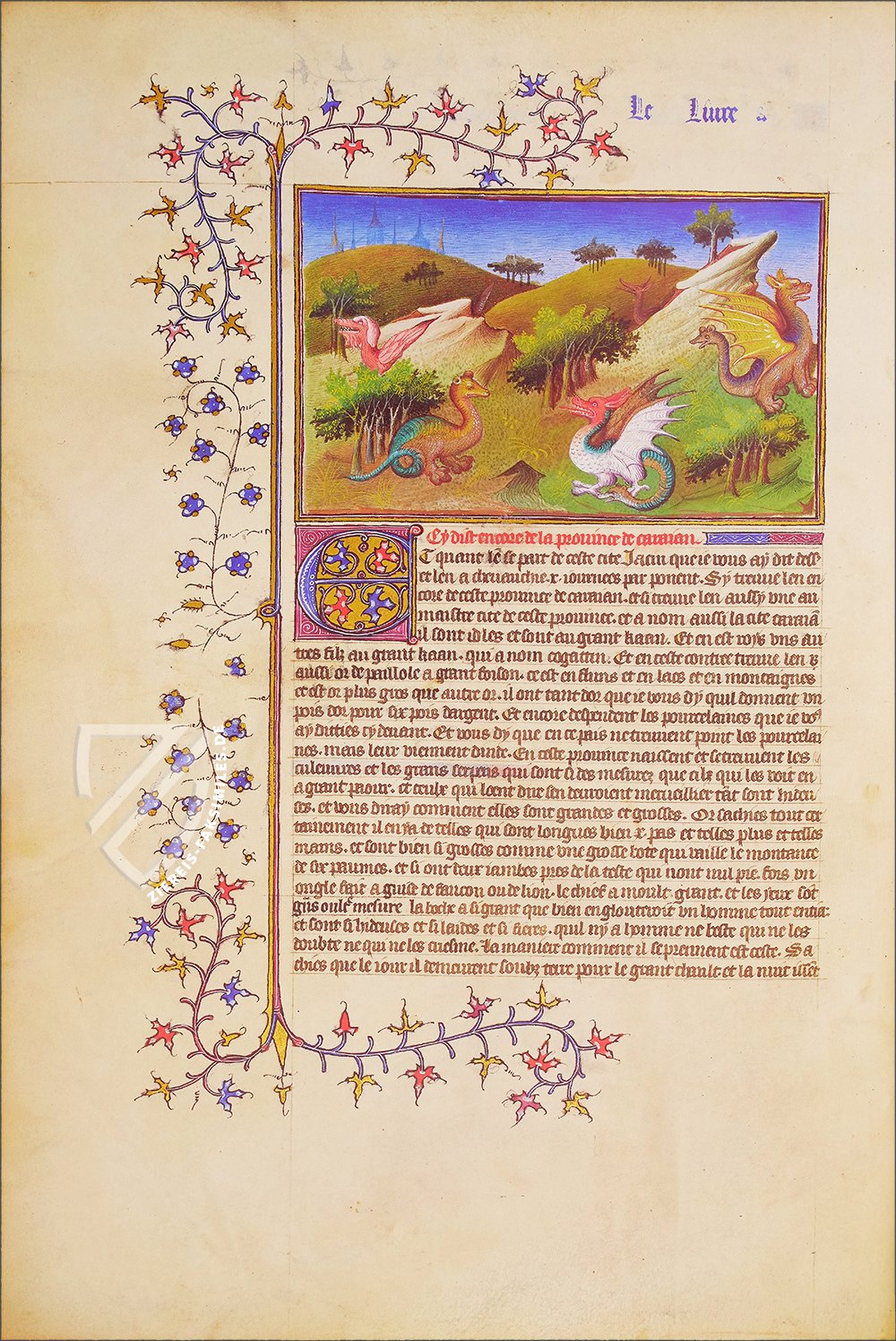 Im Frankreich des 15. Jahrhunderts entstand eine kunstvolle Handschrift, an der die berĂźhmtesten und einflussreichsten Buchmaler jener Zeit beteiligt waren. Die Schrift erzählt auf 192 Seiten und in 84 prächtigen, groĂflächigen Illustrationen mit Goldeinsatz die Geschichte des Handelsreisenden Marco Polo. Es wird von den Reisen des Pioniers in die entlegensten Gebiete Asiens berichtet, von seiner RĂźckreise Ăźber Indien nach Venedig und auch Gebiete, die Marco Polo wohl nie selbst bereist hat, werden beschrieben. Das Werk stellt eine einmalige Mischung aus geographischer und ethnologischer Dokumentation, sowie aus phantastischer mittelalterlicher Vorstellung und Sage dar.