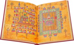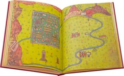 Dieses türkische Meisterwerk der Buchmalerei trägt den vollständigen Namen Beyan-ı Menazil-i Sefer-i Irakeyn-i Sultan Süleyman Han oder "Chronik der Etappen des Feldzuges von Sultan Suleiman Khan im Irak und Persien" und schildert den ersten Feldzug von 1533-36 während des Osmanisch-Safawidischen Krieges von 1532-1555. Es gehört zum Genre der Menazilname- (auch: Menzilnâme-) Werke, die die Übernachtungsorte auf einer Straße und die Entfernungen zwischen diesen Orten angeben. Obwohl es sich bei solchen Werken in der Regel um praktische Reiseführer handelt, die die Reisezeit in Stunden angeben, wurde dieses Exemplar aus dem Jahr 1537 im Auftrag von Sultan Süleyman I. (1494-1566) erstellt, um seinen Feldzug zu dokumentieren und zu würdigen. Als solches zeigt es 107 farbenfrohe Landschaften und Stadtansichten, die mit viel Liebe zum Detail von dem großen Universalgelehrten Matrakçı Nasuh (ca. 1480 - ca. 1564) geschaffen wurden.
