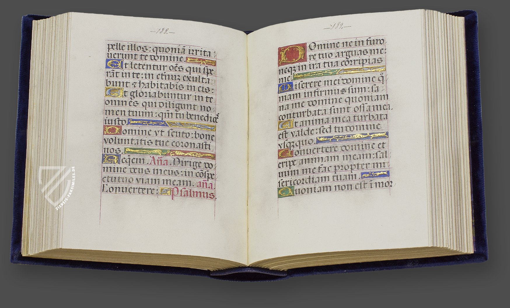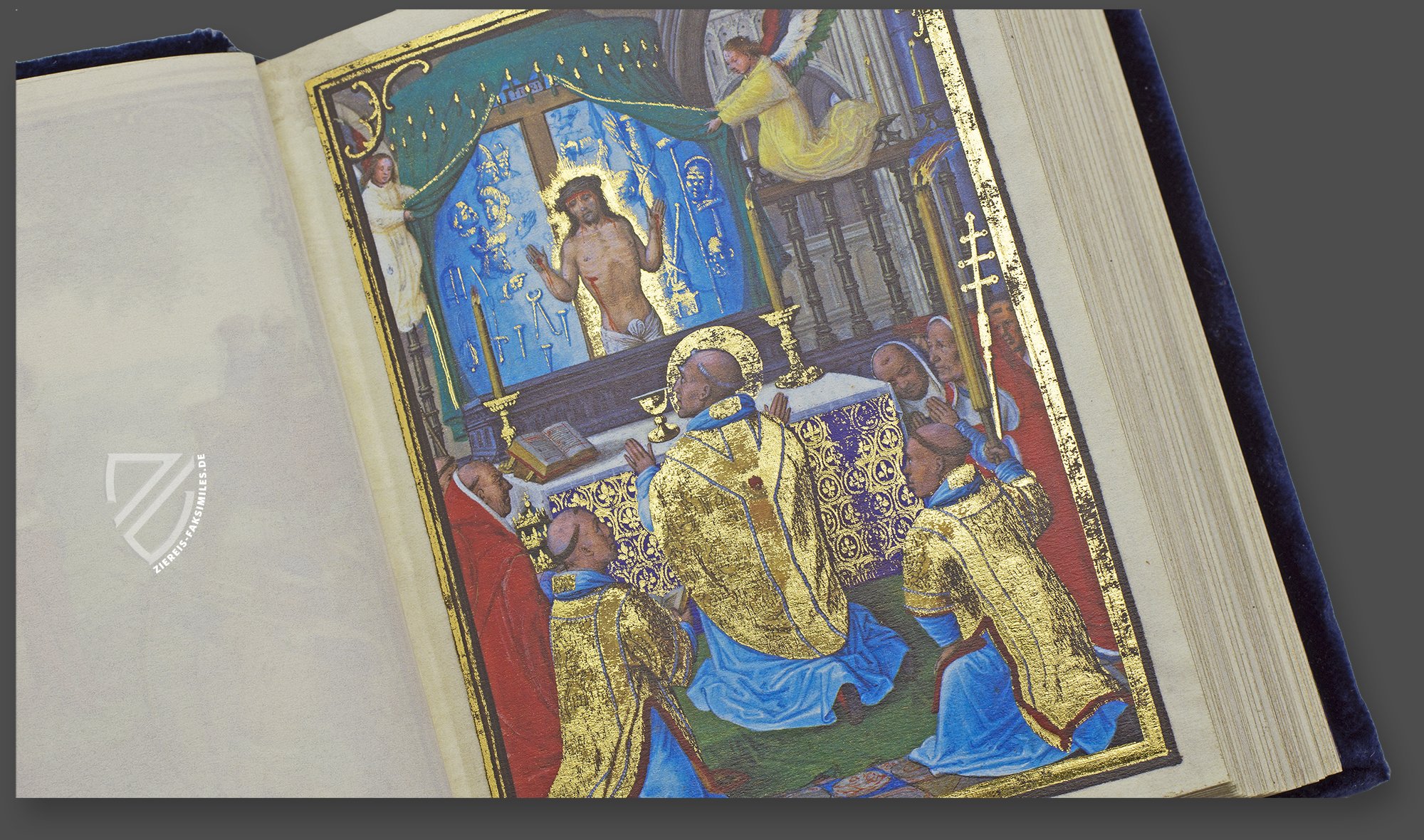 Das kleine Müchner-Montserrat Stundenbuch stammt aus der belgischen Stadt Brügge. Dort entstand es im Jahre 1540 wohl im Auftrag des Alonso de Idiaquez (1497–1547), welcher königlicher Sekretär von Carlos I. von Spanien war. Auf 468 Seiten beinhaltet das Buch 19 ganzseitige Miniaturen, 20 kleine Initialen, fünf große historisierte Initialen sowie 20 Bordüren mit floralen Mustern. Die äußerst detaillierten Malereien stammen von dem in Brügge oder Antwerpen geborenen Simon Bening (ca. 1483–1561). Noch zu Lebzeiten lobte man den flämischen Miniaturenmaler und Illustrator als den besten Meister der Buchillustration in ganz Europa. Und dies definitiv nicht zu Unrecht. Ein ebenso reich bebilderter Kalender eröffnet das Buch mit Stundengebeten für den lesekundigen Laien.