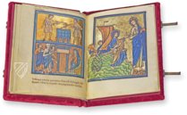 William de Brailles gilt als einer der gröĂten Schreiber und Buchmaler der Gotik und zeichnet sich durch seine fantasievollen und originellen Miniaturen aus, die mit filigran geprĂ€gten BlattgoldhintergrĂŒnden versehen sind. Die Oxforder Bibelbilder sind ein prĂ€chtiger Bilderzyklus aus 34 ganzseitige Miniaturen biblischer Geschichten, der einst in eine Bibelhandschrift einfĂŒhrte, deren restliche Teile jedoch nicht erhalten sind. Trotzdem gilt der bis heute bewahrte Bilderzyklus als das gröĂte Meisterwerk des berĂŒhmten Oxforder Buchmalers. Obwohl der Auftraggeber unbekannt bleibt, muss es sich um einen Laien von groĂem Reichtum und distinguiertem Geschmack gehandelt haben. Der Einband des Manuskripts ist mit einer Elfenbeintafel versehen, die auf der Vorderseite die Geburt Christi und auf der RĂŒckseite die Kreuzigung zeigt. Die kostbare Schnitzerei ist so angebracht, dass die letztgenannte Szene zu sehen ist, wenn der Buchdeckel geöffnet wird. Es handelt sich um ein wahrhaft wunderbares Zeugnis der Buchmalerei aus einer Zeit, in der die Nachfrage unter den Laien drastisch anstieg.