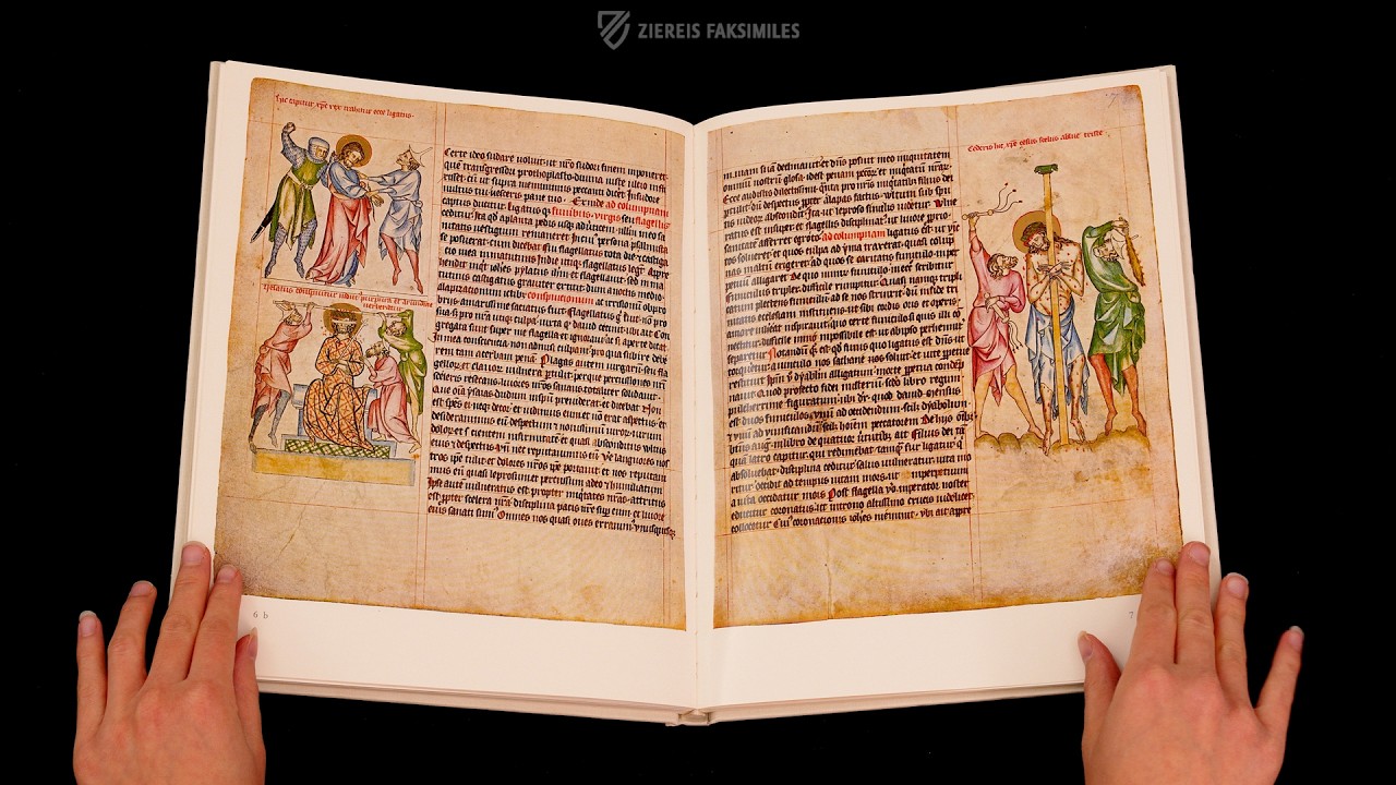 Es wird vermutet, dass sie das Werk des Kanonikers und Schreibers Beneš ist, der als Priester im St. Georgs-Kloster tätig war. Die naturalistischen Figuren sind in elegante, fließende Gewänder und Strumpfhosen gekleidet, für die eine helle Farbpalette verwendet wurde. Einige der Figuren sind zudem mit goldenen Heiligenscheinen und Kronen ausgestattet. Um daran zu erinnern, dass das Thema, das die fünf Texte dieses handschriftlichen Meisterwerks verbindet, die Passion ist, werden die Arma Christi, die Marterwerkzeuge Christi, in zwei der ganzseitigen Miniaturen eingehend dargestellt.