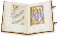 Sagenhafte 55 prachtvoll kolorierte Miniaturen mit glänzendem Goldgrund sowie 81 goldene Rankeninitialen schmücken das Perikopenbuch von St. Peter und ist damit die am reichsten illuminierte, erhaltene Evangelienhandschrift aus dem Hochmittelalter. Die Mitte des 12. Jahrhunderts entstandene Handschrift entfaltet auf 106 Seiten ein wunderbares Bildprogramm zum Leben und Wirken Christi, das seinesgleichen sucht. Dabei werden die Lesungen zu den Hochfesten wie Weihnachten, Ostern oder den Marien- und Heiligenfesten oft von opulenten ganzseitigen Miniaturen in prachtvollen Rahmungen angemessen eingeleitet. Die kunstvollen Bilder sind geprägt von einer Verbindung byzantinischer Stilprinzipien mit westlichen Ikonogafien, worin sich eine nahe Verwandtschaft zu älteren Werken aus dem Skriptorium von St. Peter in Salzburg erweist, wo die Handschrift wahrscheinlich auch geschaffen wurde. Die beteiligten Schreiber und Buchmaler waren fraglos Meister ihres Fachs und brachten einen Höhepunkt der romanischen Buchkunst hervor.