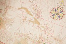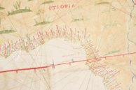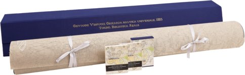 Amerigo Vespucci war ein Kaufmann, Seefahrer, Navigator und einer der bedeutendsten Entdecker, die je gelebt haben. Während seiner Fahrten erforschte er weite Teile der Ostküste Südamerikas. Der Doppelkontinent Amerika verdankt ihm seinen Namen. Bei der uns hier vorliegenden Karte handelt es sich um eine Planisphäre aus Turin, die im Jahr 1523 nach den Erkenntnissen des großen Forschers angefertigt wurde. Das Meisterwerk ist in sieben verschiedenen Farben gehalten und weist Verzierungen aus kostbarem Blattgold auf.