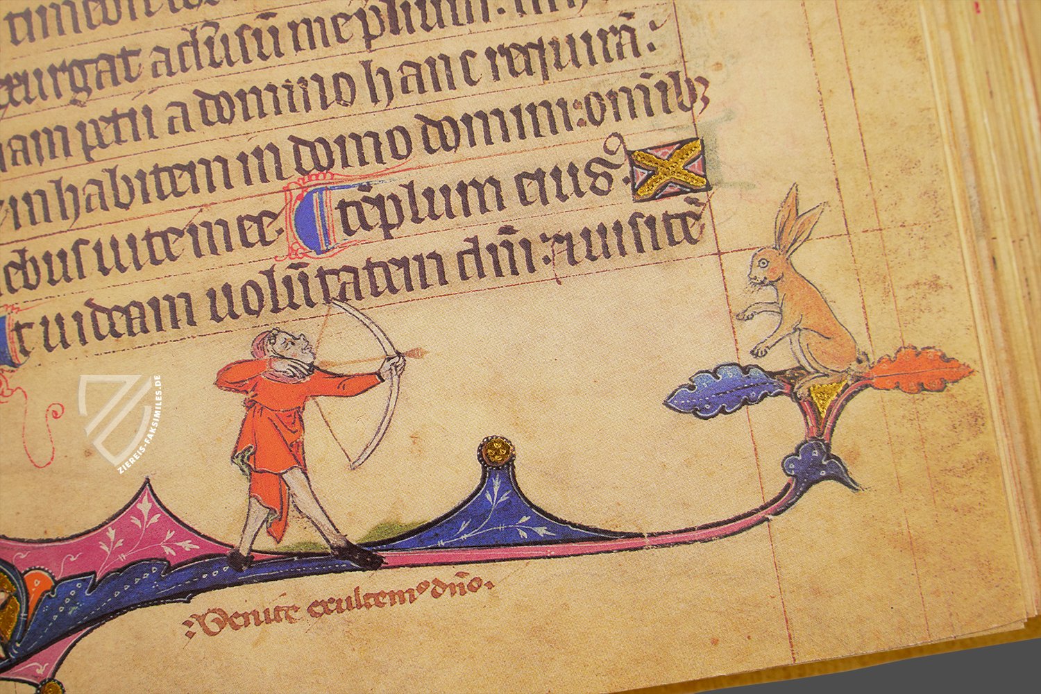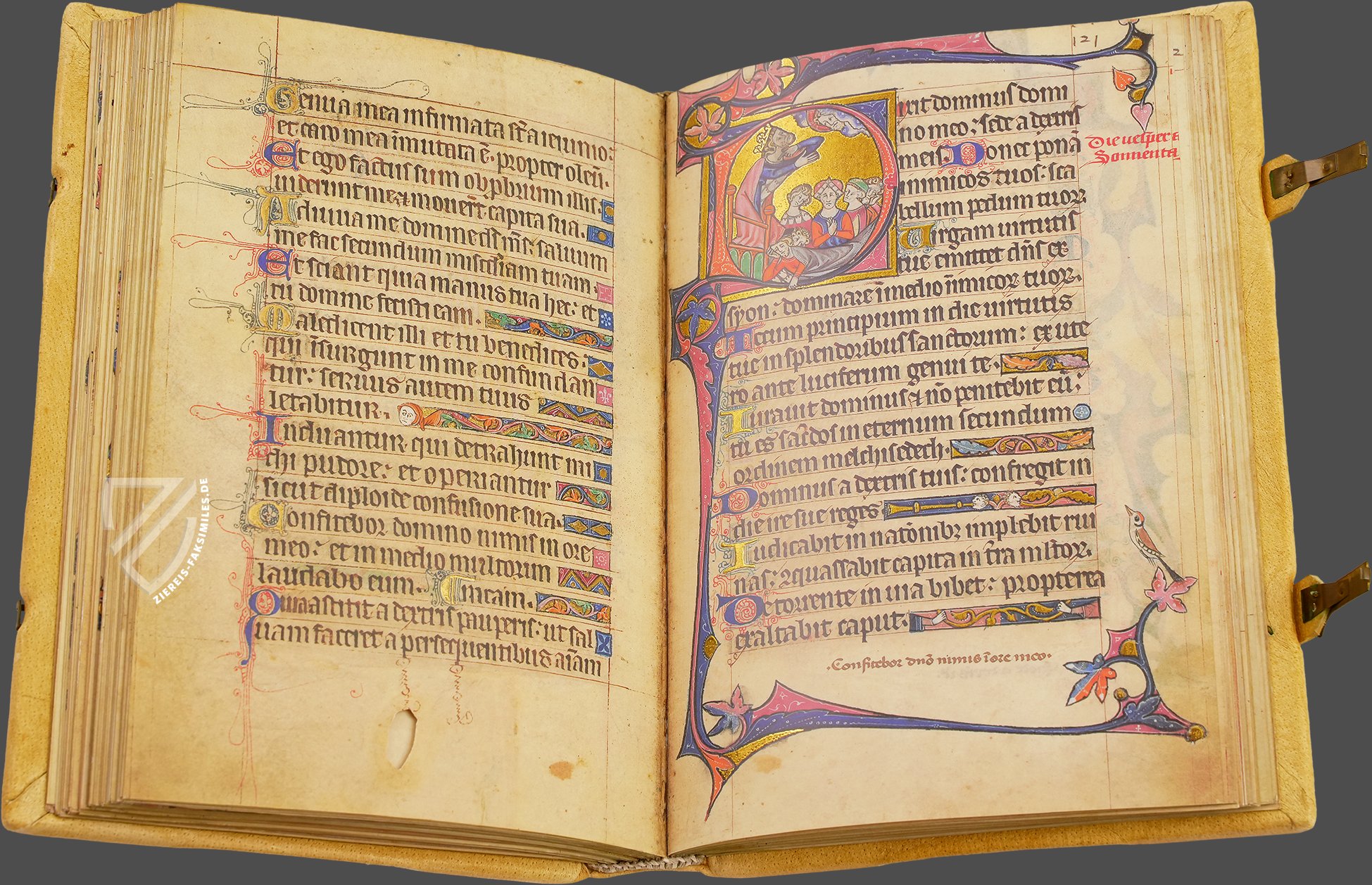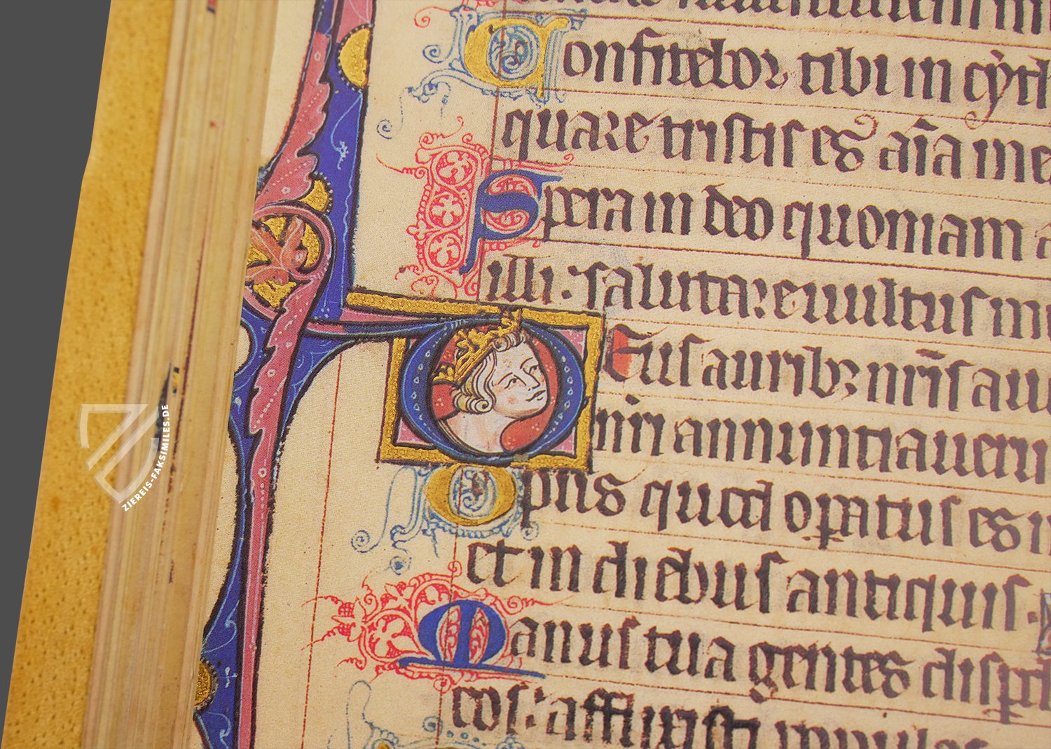 Ein Feuerwerk gotischer Kunstfertigkeit entstand im ausgehenden 13. Jahrhundert in der Benediktinerabtei Ramsey nahe Cambridge: ein fĂŒr den Eigengebrauch bestimmter Psalter, von dem der GroĂteil der Miniaturseiten heute in New York und der ĂŒbrige Teil im Stift St. Paul in KĂ€rnten liegt. In der Faksimileausgabe werden beide Teile zusammengefĂŒhrt. Auf den 12 Miniaturseiten entfalten sich 40 biblische Szenen. Der obere Teil der Miniaturen besteht fast immer aus architektonischen Zierformen, wie es einer frĂŒhmittelalterlichen Tradition entspricht. Untypisch, da nicht biblischen Inhalts, ist auf Folio 4v die Darstellung der GrĂŒndungsgeschichte des Klosters, zu der auch die Ermordung Thomas Beckets (1118â1170) zĂ€hlt. Die Figuren der Szenen sind von groĂer Lebendigkeit, die ihnen durch die ExpressivitĂ€t ihre Gestik und Mimik zukommt. 12 Prachtinitialen, unzĂ€hlige Groteske und stilisiert florale Randillustrationen runden das Meisterwerk ab.