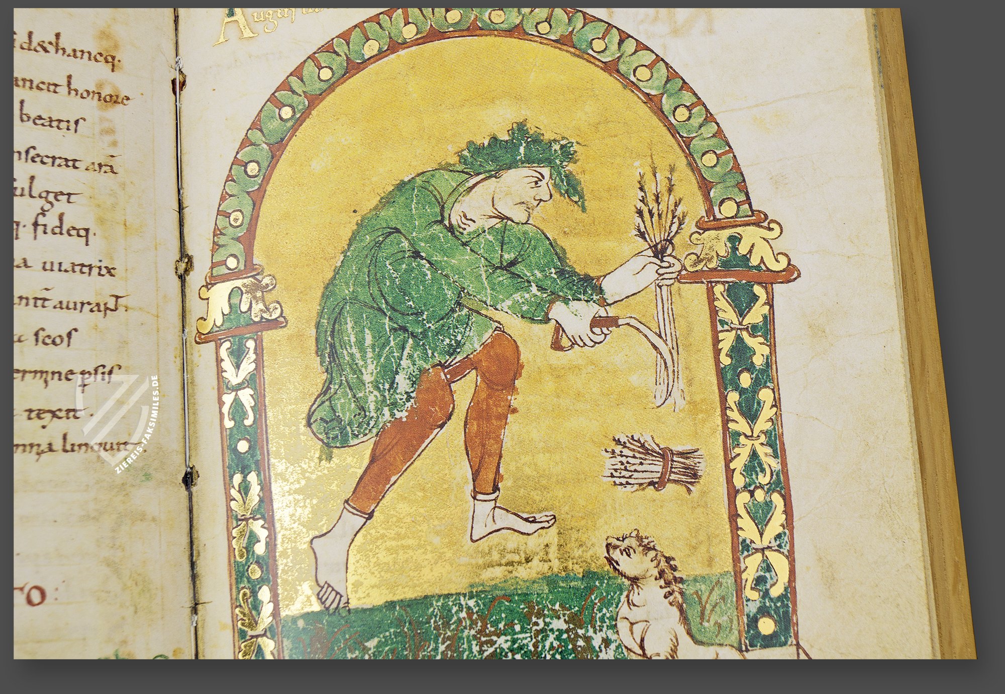 Das Reichenauer Martyrologium wurde etwa 855 für Kaiser Lothar I. angefertigt. Das Werk wurde vom gebildeten Benediktinermönch Wandalbert von Prüm verfasst, der für einige der schönsten liturgischen Handschriften des frühen Mittelalters verantwortlich war. Das Martyrologium enthält neben einem Verzeichnis zu den Festtagen der Heiligen auch ein Kalendergedicht, das das mittelalterliche Leben auf dem Land nach dem Ablauf des Jahres schildert.