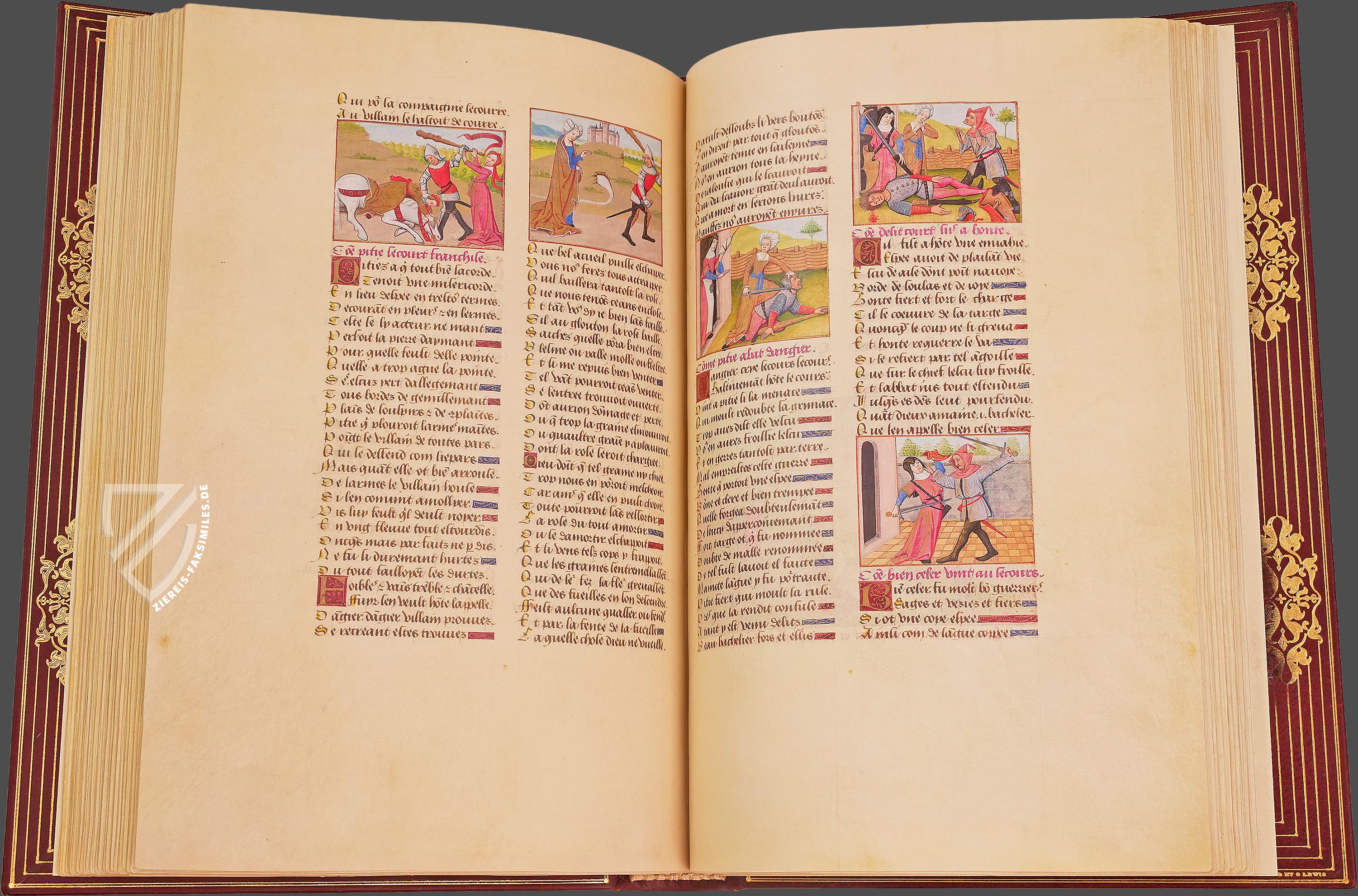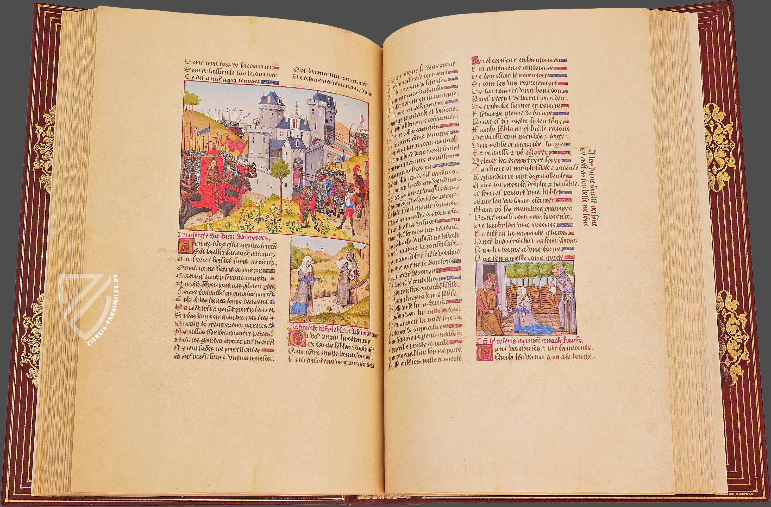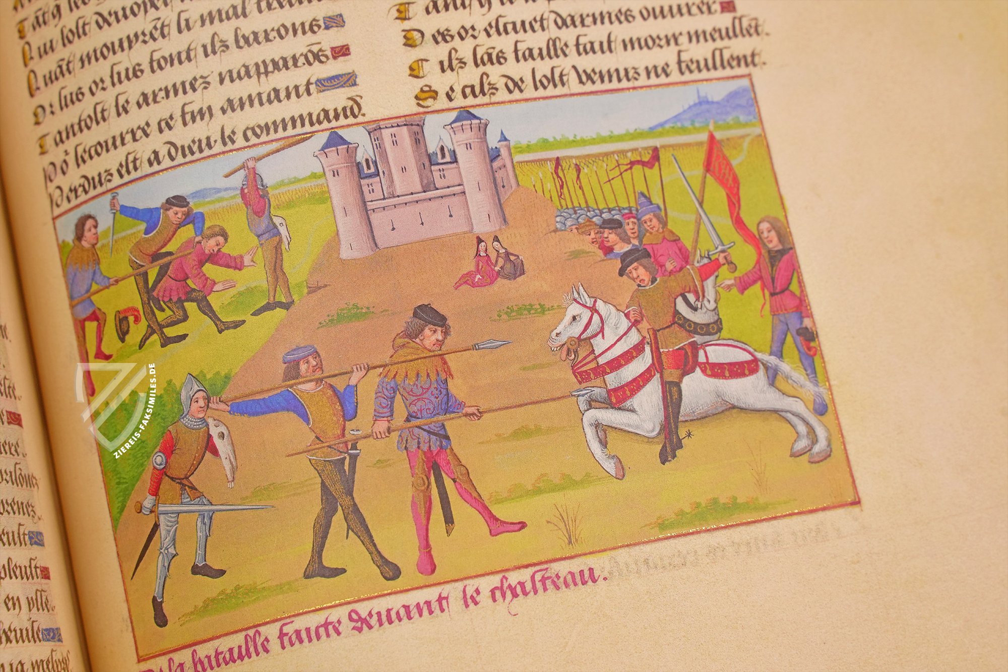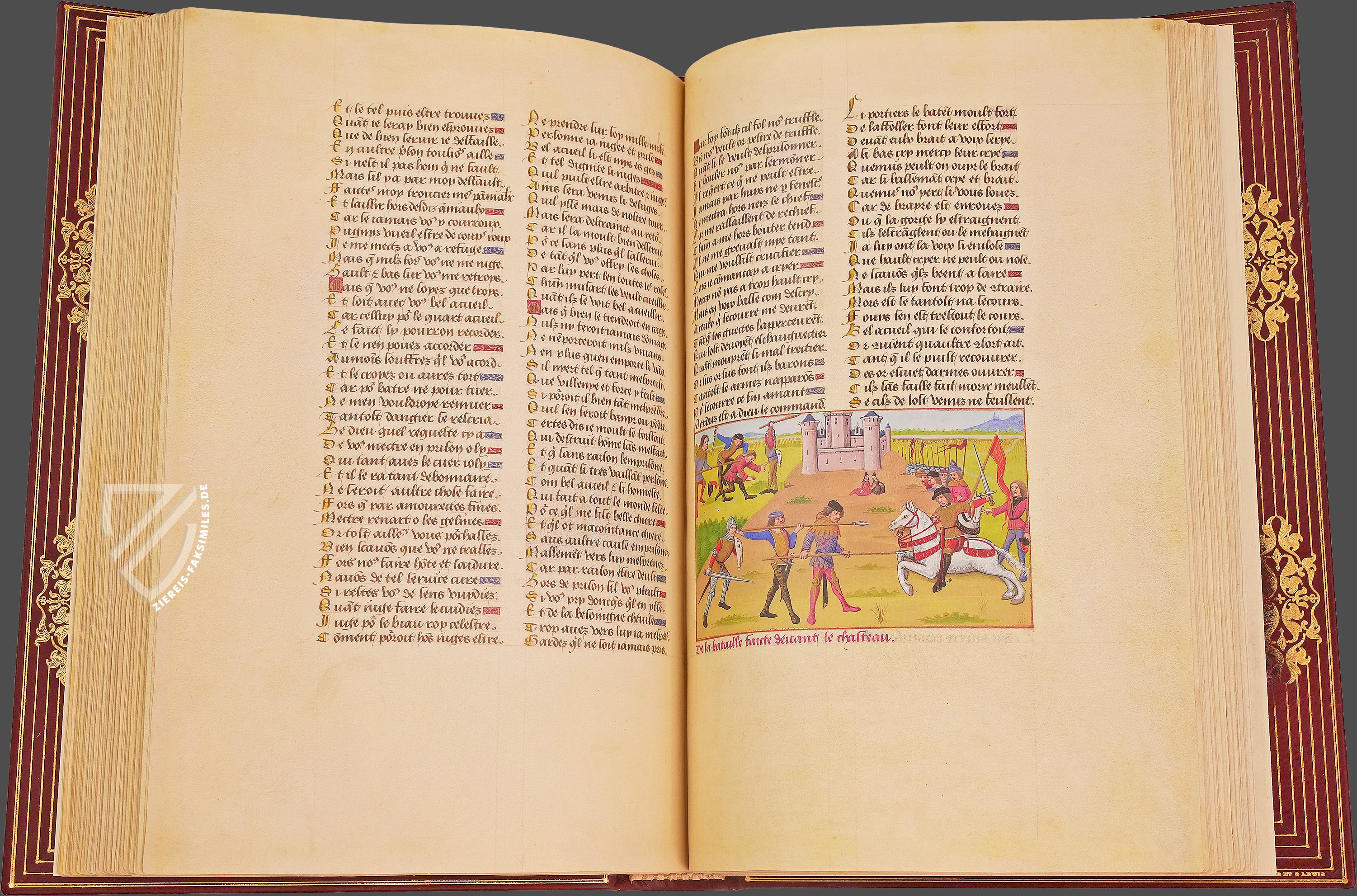 Die wunderschöne Abschrift des Roman de la Rose in der Bodlein Library ist eine der am reichsten illuminierten Handschriften des mittelalterlichen Beststellers. Sie wurde von Luise von Savoyen (1476–1531), zur Entstehungszeit noch Gräfin von Angoulême, in Auftrag gegeben und von Robinet Testard (fl. 1475–1531) mit insgesamt 127 ausdrucksstarken, erzählerischen Miniaturen und Dutzenden goldenen Zierinitialen ausgestattet. Der von Guillaume de Lorris um 1235 begonnene und von Jean de Meung um 1280 in Paris vollendete Rosenroman war bis in die Renaissance eines der meistgelesenen Werke in Frankreich. Nicht nur die Verwendung der Ich-Perspektive war bahnbrechend, sondern auch die allegorischen Figuren und die Darstellung der gesamten Erzählung in Form eines Traums. Zugleich war das altfranzösische Werk jedoch bereits im 13. Jahrhundert höchst umstritten: während sich einige an der ungewohnt sinnlichen Sprache und den erotischen Motiven störten, kritisierten andere die sich darin manifestierende Frauenfeindlichkeit – darunter etwa Christine de Pizan (1364–1429).