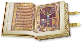 - 21 Seiten mit atemberaubender Ornamentik, 14 ganzseitige Miniaturen (einige von ihnen auf Purpurgrund), fast 350 Schmuckinitialen in Gold und Silber