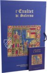 Die Schriftrolle wurde zwischen 1225 und 1227 in Salerno von zwei Künstlern geschaffen, die im stark byzantinisch geprägten Stil der süditalienischen Kunst arbeiteten, und wurde ganz ohne Text gestaltet, mit Ausnahme der einleitenden Verkündigung, die auch als Titel dient. Der Diakon las nicht aus einem Messbuch vor, das nach und nach entrollt wurde, sondern die Rolle hing vom Ambo herab, einer erhöhten Position für einen Redner, die im späteren Kirchenbau durch die Kanzel ersetzt wurde und für die italienische Kirchengestaltung einzigartig war. Jeder Abschnitt ist mit zwei biblischen Szenen auf dunkelblauem Hintergrund geschmückt, die von goldenen Rahmen mit roten und blauen Rauten umgeben sind. Das Exultet von Salerno zeigt nicht nur die Ereignisse der Kreuzigung und der Auferstehung, sondern enthält auch ein Porträt des römischen Kaisers Friedrich II.. Das Werk wurde von Giovanni da Procida in Auftrag gegeben, einem Adligen aus Salerno und hochrangigen Mitglied des kaiserlichen Hofes.