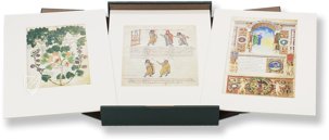 Die Biblioteca Apostolica Vaticana ist eine der bedeutendsten Bibliotheken der Welt und beherbergt eine atemberaubende und äußerst umfangreiche Sammlung antiker, mittelalterlicher und frühneuzeitlicher Handschriften. Das sorgsam zusammengestellte Kompendium in der Kassette Schätze der Biblioteca Apostolica Vaticana – Litterae versammelt 12 kunstvolle Einzelblätter aus einer exquisiten Auswahl der schönsten und wertvollsten literarischen Handschriften der päpstlichen Bibliothek. Darunter befinden sich etwa der berühmte Vergilius Vaticanus, das faszinierende Falkenbuch Kaiser Friedrichs II. sowie die von Sandro Botticelli einzigartig ausgestattete Göttliche Komödie. Die illuminierten Einzelblätter werden allesamt in hochwertigen Passepartouts präsentiert, die in einer schmuckvollen Kassette zusammenkommen, deren Deckel eine echtvergoldete Messingscheibe nach dem getreuen Vorbild der faksimilierten astrologischen Tafel aus dem Ptolemöus Handtafel-Codex ziert. Ein großartiger Einblick in die beeindruckenden Schatzkammern der Vatikanischen Bibliothek!