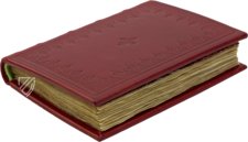 Ein weiterer Name eines beteiligten Künstlers findet sich auf dem Buchrücken. Dort hat sich der Amienser Buchbinder Tessier verewigt, der das Kleinod der französischen Buchkunst des 16. Jahrhunderts in wunderbares dunkelrotes Leder gebunden hat.